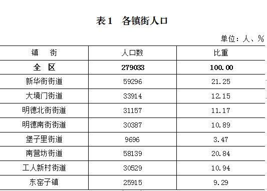 全區(qū)常住人口為279033 人,與2010年第六次全國人口普查的245562人相比,增加33471人,增長13.63%,年平均增長率為1.29%。