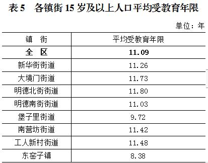 與2010年第六次全國人口普查相比,全區(qū)常住人口中,15歲及以上人口的平均受教育年限[5]由9.94年提高至11.09年。