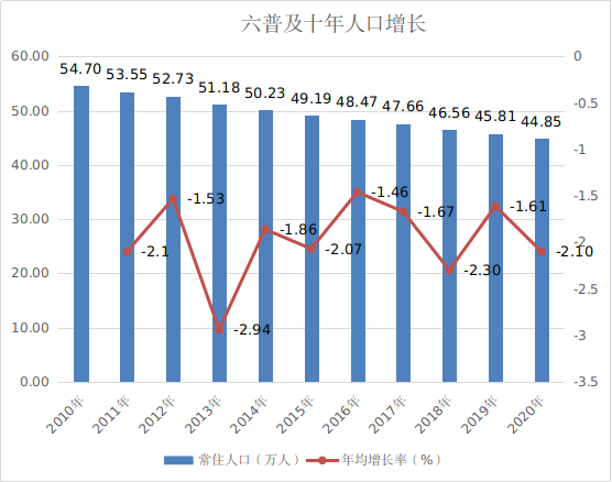 圖1-1??六人普及近10年常住人口及年均增長率
