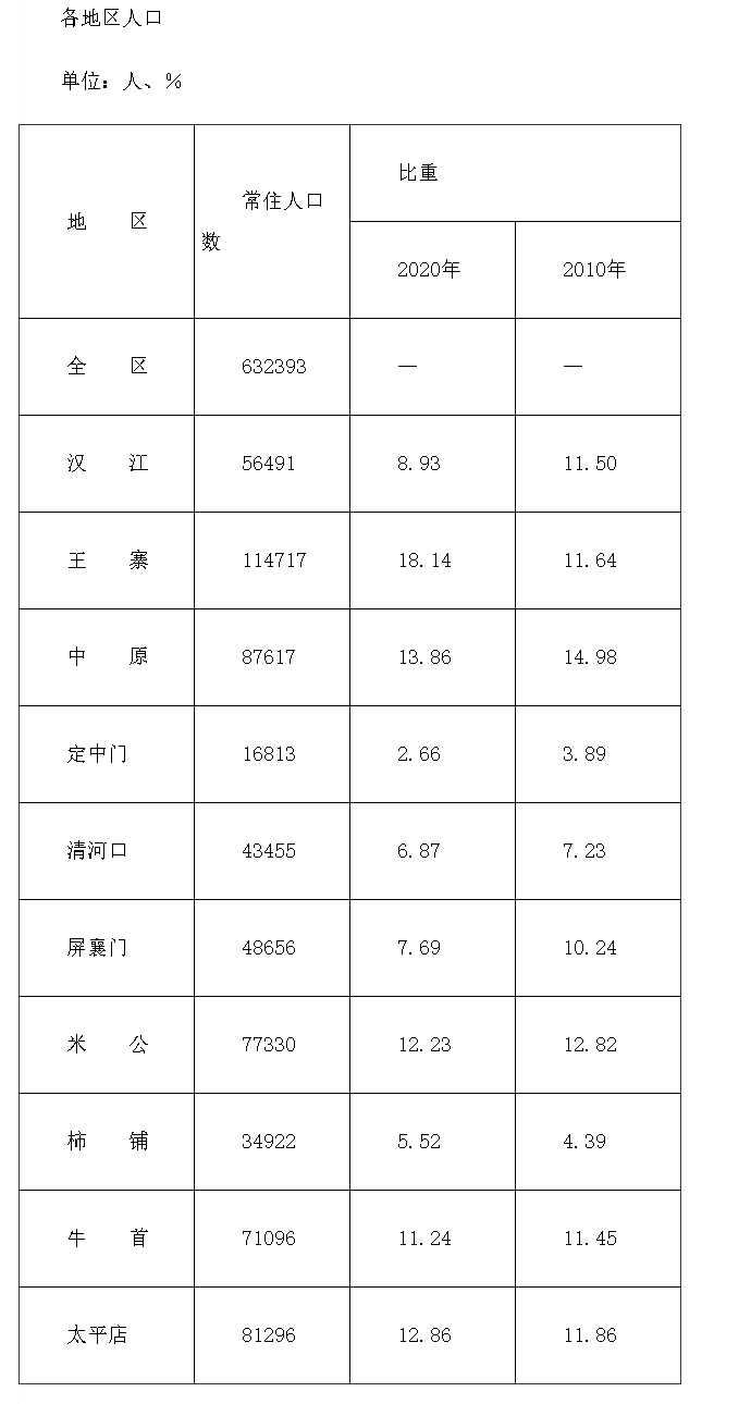 樊城區(qū)第七次全國人口普查公報(第二號) ——地區(qū)人口情況