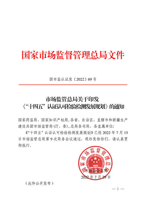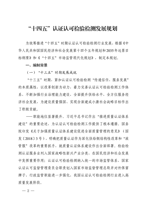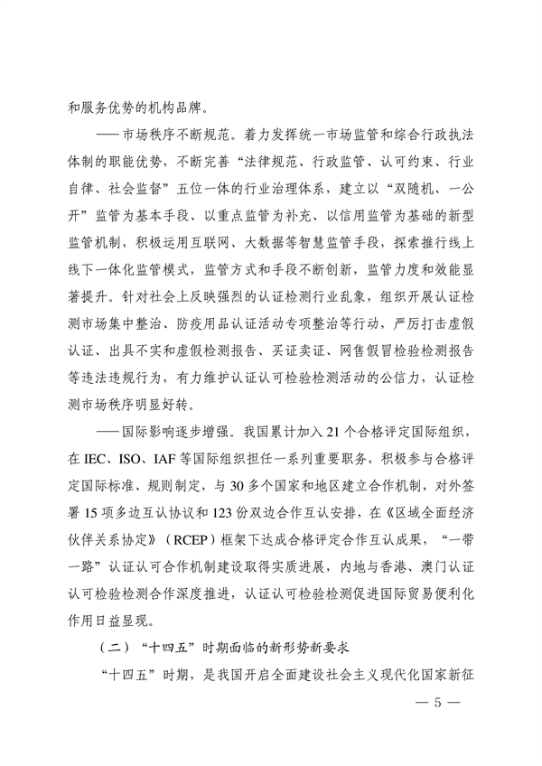 市場(chǎng)監(jiān)管總局印發(fā)《“十四五”認(rèn)證認(rèn)可檢驗(yàn)檢測(cè)發(fā)展規(guī)劃》