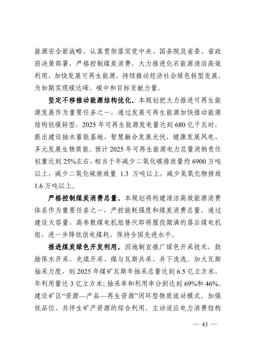 本規(guī)劃把大力推進可再生能源發(fā)展作為重要任務之一,通過發(fā)展可再生能源加快推動能源結構低碳轉(zhuǎn)型,2025 年可再生能源發(fā)電量達到 680 億千瓦時,提出建設抽水蓄能基地、智慧融合發(fā)展光伏、健康發(fā)展風電、多元發(fā)展生物質(zhì)能。預計 2025 年可再生能源電力總量消納責任權重達到 25%左右,相當于年減少二氧化碳排放量約 6900 萬噸以上,減少二氧化硫排放量 1.3 萬噸以上,減少氮氧化物排放1.6 萬噸以上。