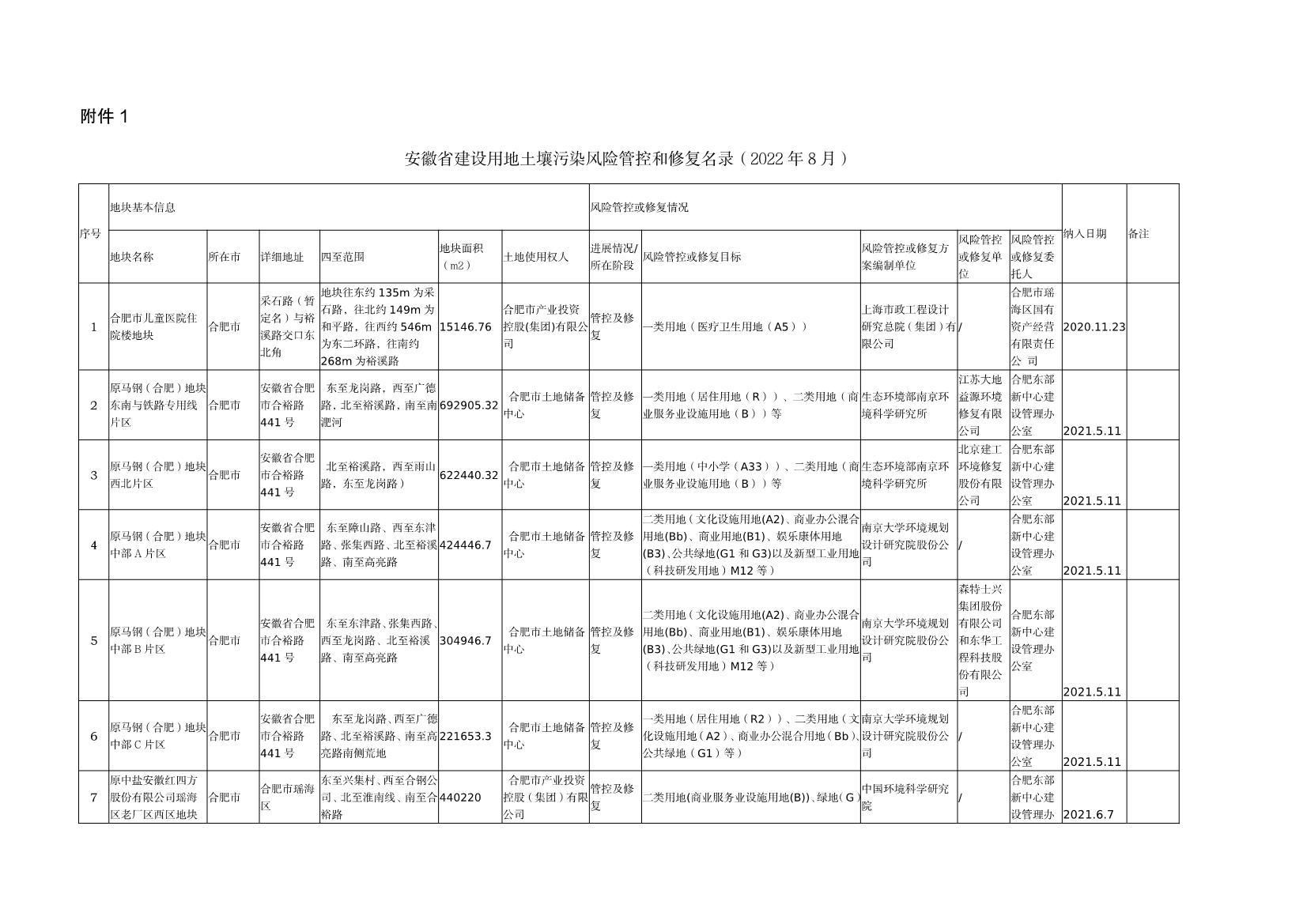 安徽省生態(tài)環(huán)境廳 安徽省自然資源廳關(guān)于發(fā)布《安徽省建設(shè)用地土壤污染風(fēng)險(xiǎn)管控和修復(fù)名錄(2022年8月)》的公告
