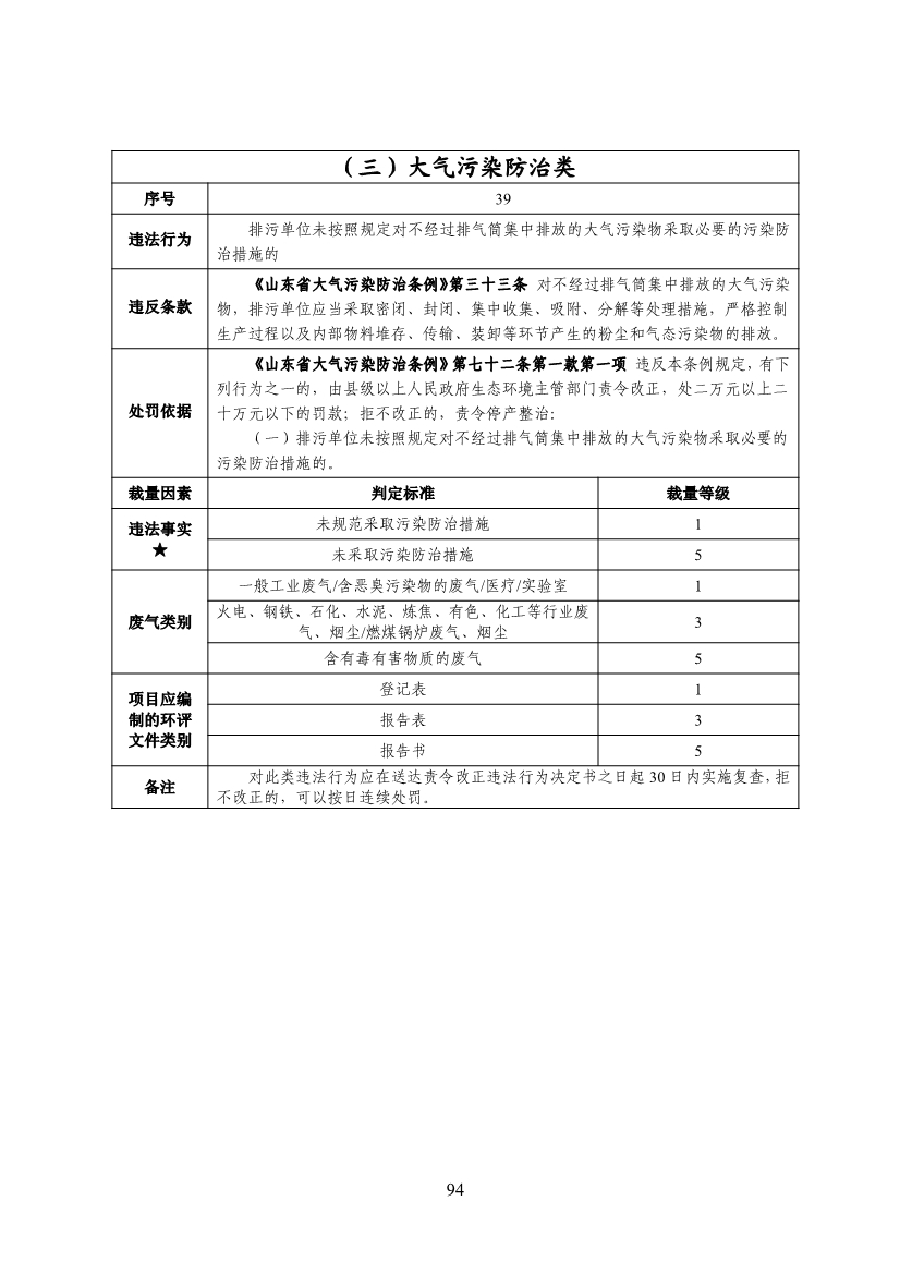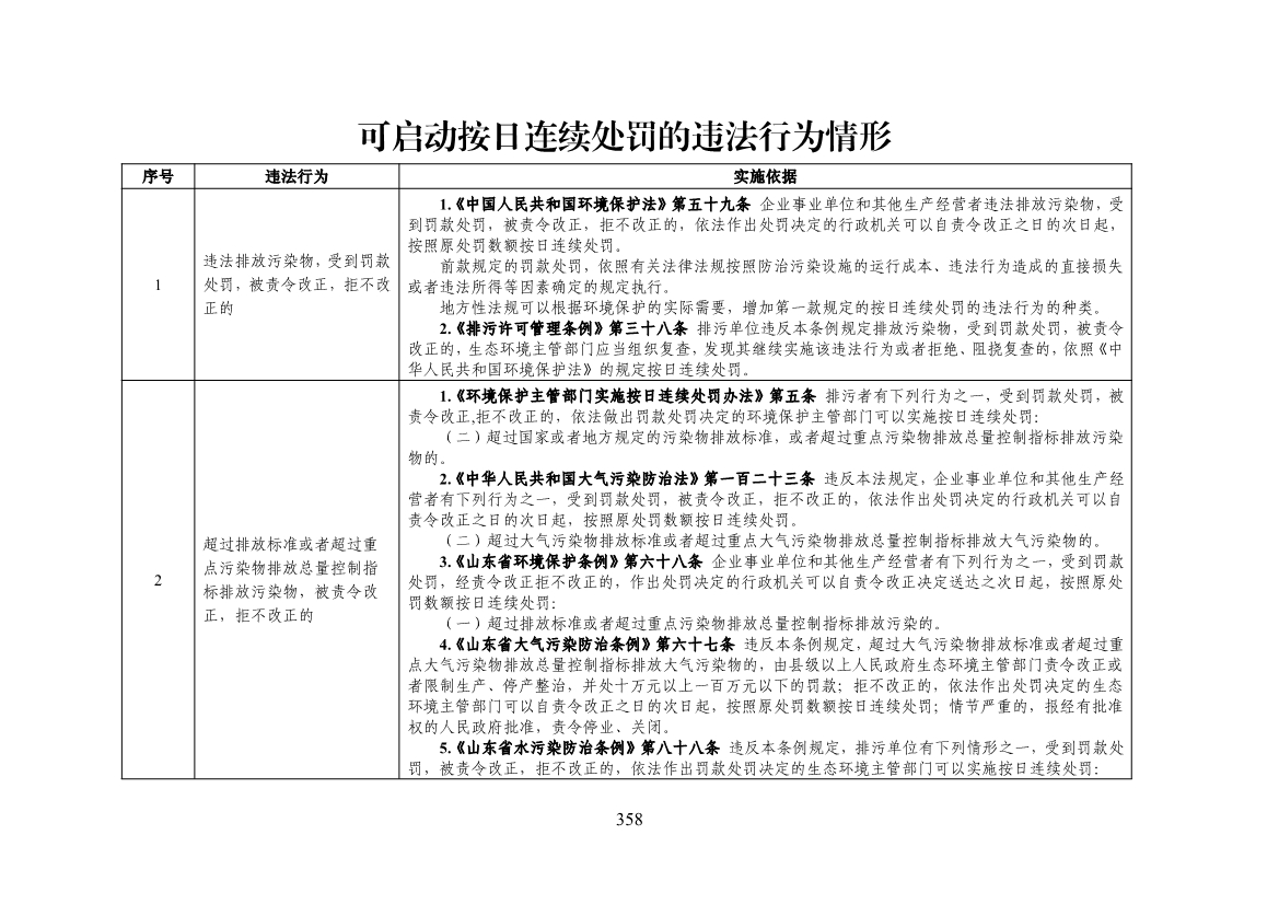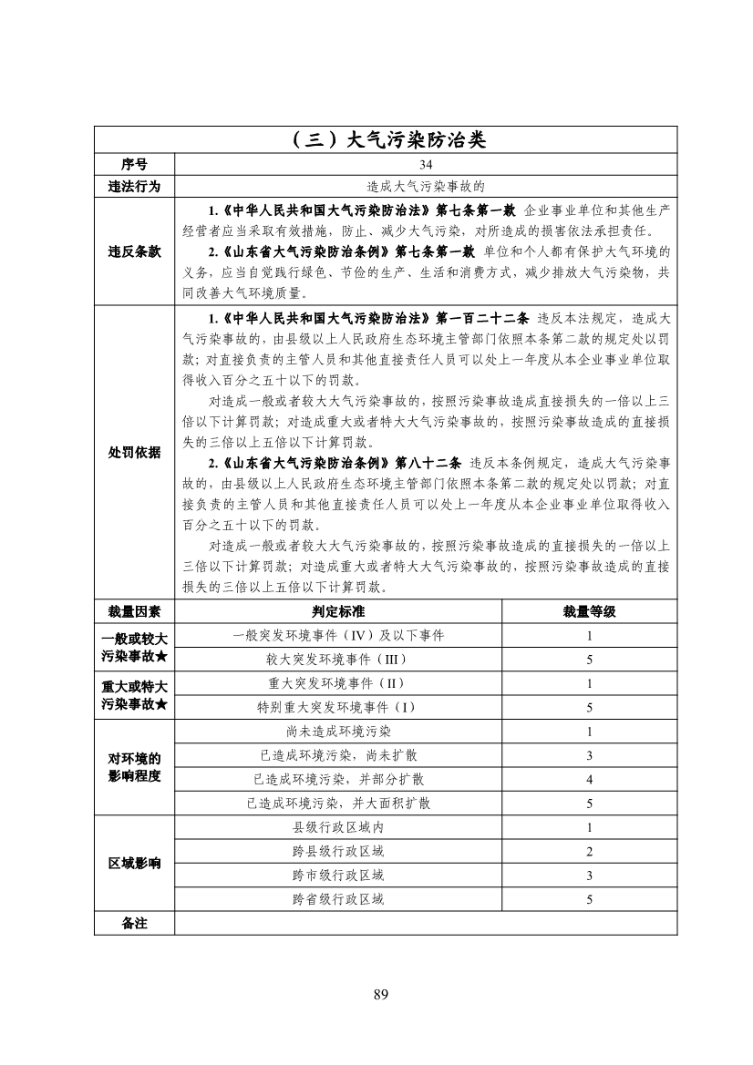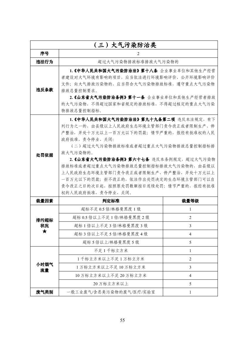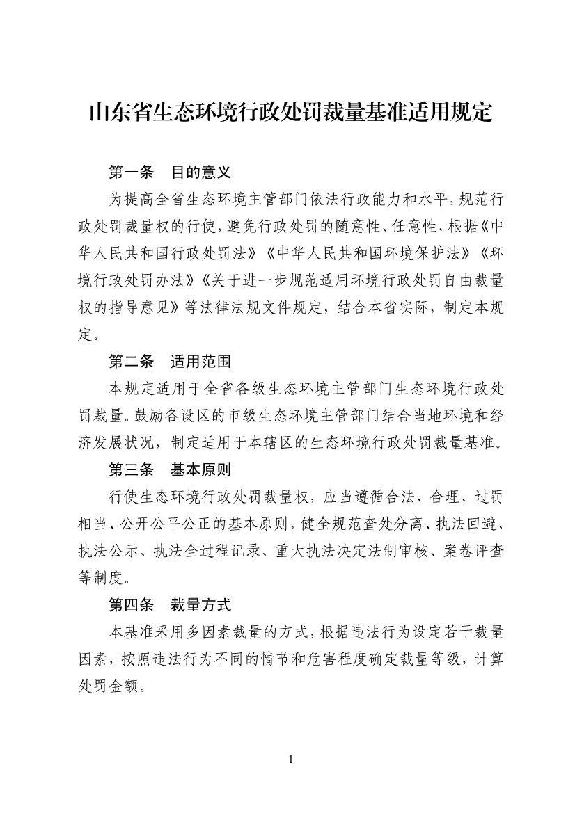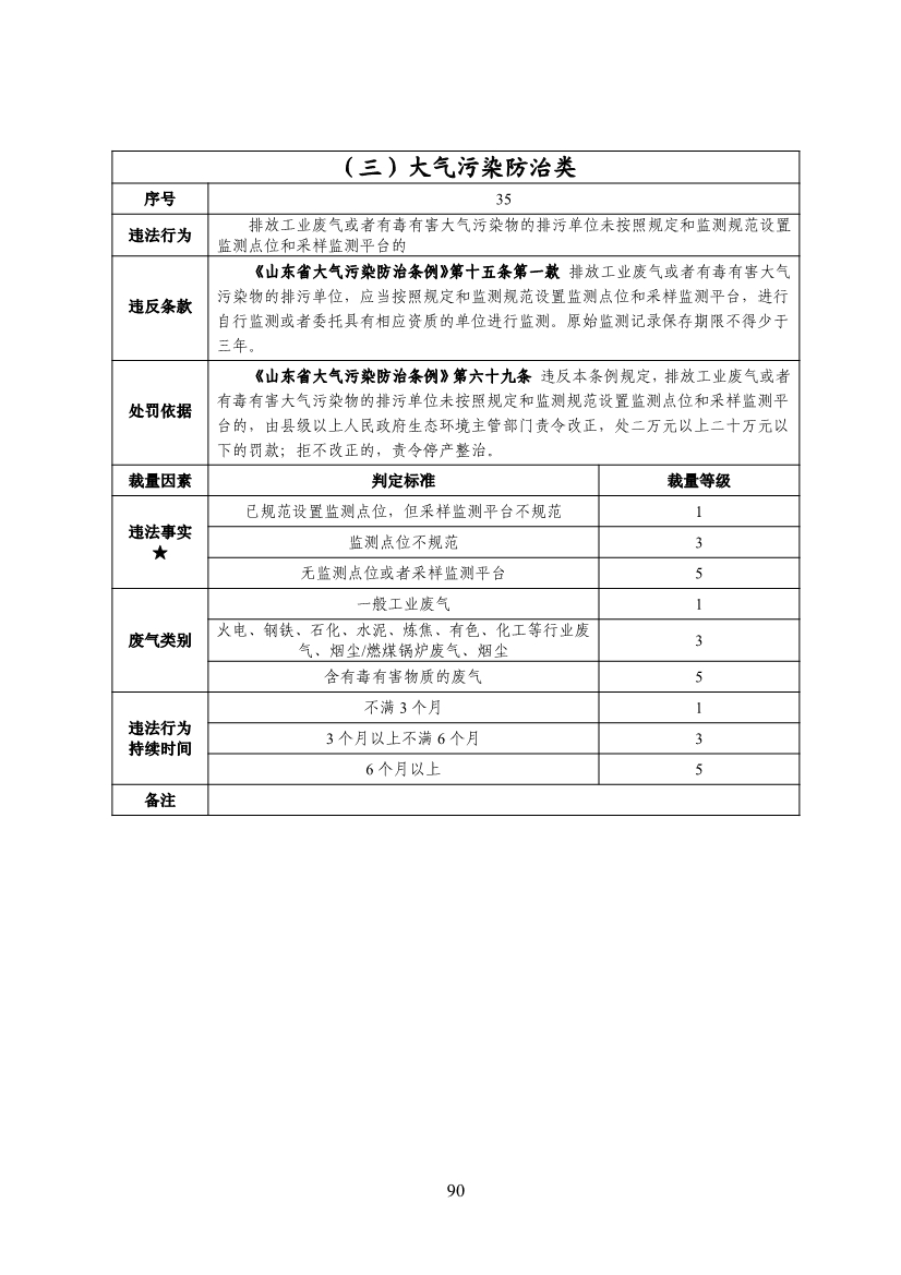 山東省生態(tài)環(huán)境行政處罰裁量基準(zhǔn)(2022年版)
