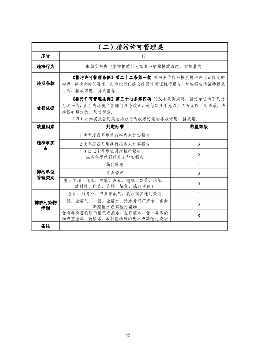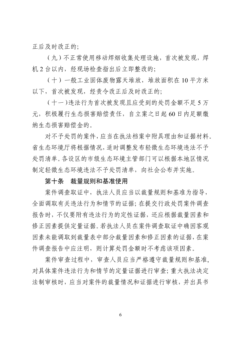 為提高全省生態(tài)環(huán)境部門依法行政能力和水平,規(guī)范行政處罰裁量權(quán)的行使,日前,山東省生態(tài)環(huán)境廳對《山東省生態(tài)環(huán)境行政處罰裁量基準(zhǔn)》(以下簡稱《裁量基準(zhǔn)》)進行了修訂?;鶞?zhǔn)擴大了輕微違法不予處罰清單,體現(xiàn)寬嚴相濟處罰精神。在原輕微違法不予處罰清單基礎(chǔ)上,進一步擴大不予處罰范圍,新增未依法填報排污登記表、未按要求提交執(zhí)行報告、未建立環(huán)境管理臺賬記錄制度、污染物排放方式或者排放去向不符合排污許可證規(guī)定、一般工業(yè)固體廢物露天堆放、罰款不足5萬但積極履行生態(tài)損害賠償責(zé)任等6種輕微違法不予處罰情形。