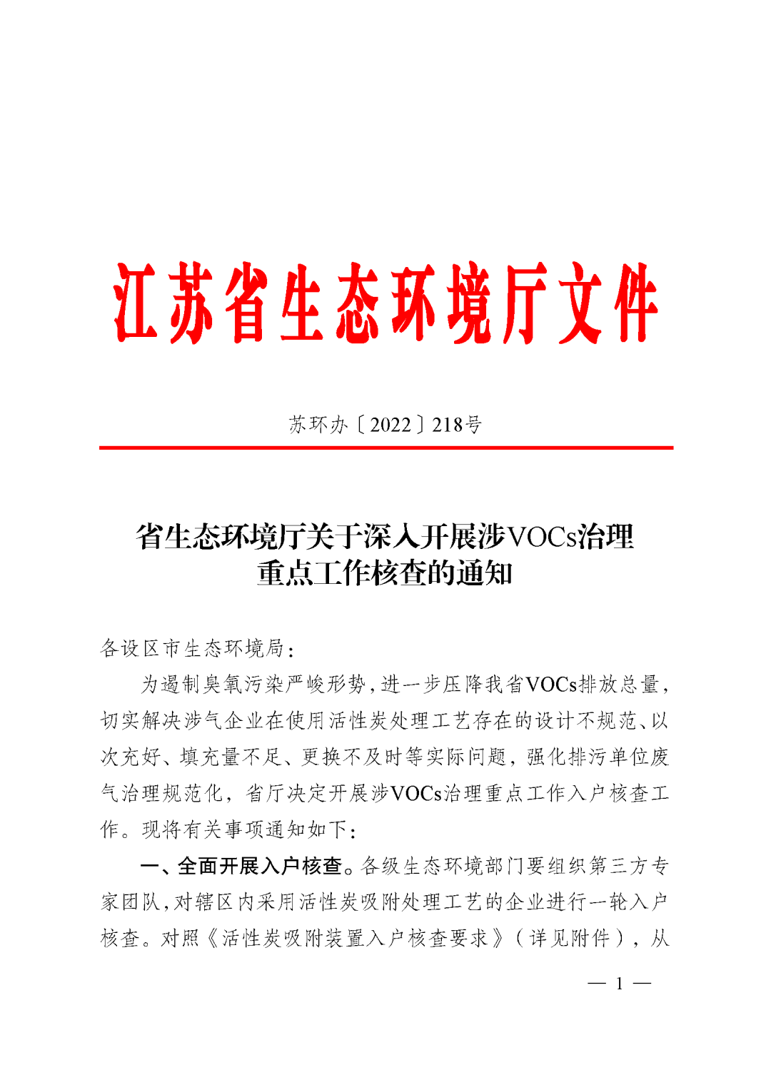 日前,江蘇發(fā)布《關于深入開展涉VOCs治理重點工作核查的通知》。重點如下: