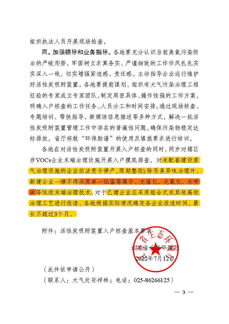 為遏制臭氧污染嚴峻形勢,進一步壓降我省VOCs排放總量, 切實解決涉氣企業(yè)在使用活性炭處理工藝存在的設計不規(guī)范、以次充好、填充量不足、更換不及時等實際問題,強化排污單位廢氣治理規(guī)范化,省廳決定開展涉VOCs治理重點工作入戶核查工作。現(xiàn)將有關事項通知如下: