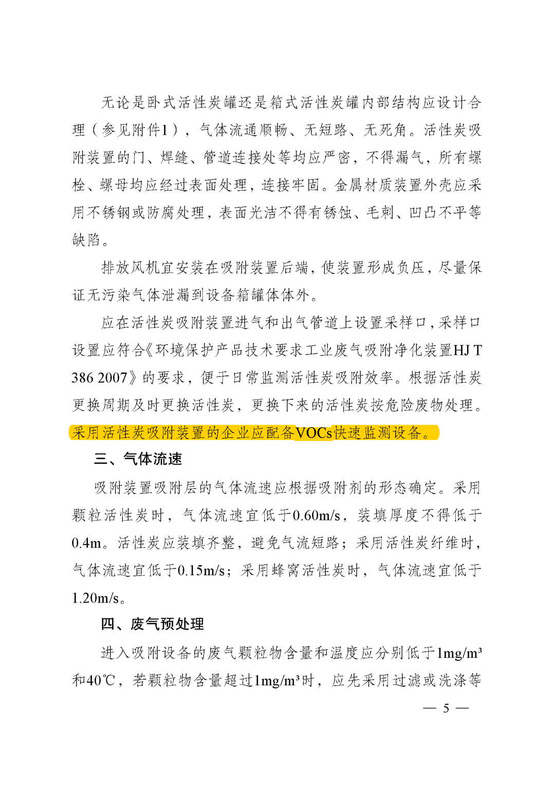 應在活性炭吸附裝置進氣和出氣管道上設置采樣口,采樣口設置應符合《環(huán)境保護產(chǎn)品技術要求工業(yè)廢氣吸附凈化裝置HJ/T 386-2007》的要求,便于日常監(jiān)測活性炭吸附效率。根據(jù)活性炭更換周期及時更換活性炭,更換下來的活性炭按危險廢物處理。采用活性炭吸附裝置的企業(yè)應配備VOCs快速監(jiān)測設備。