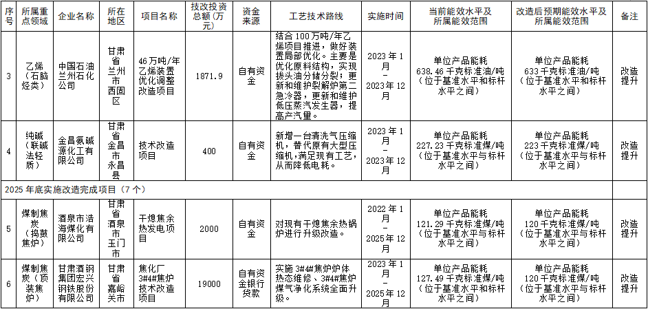 附件:甘肅省石化化工領(lǐng)域企業(yè)技術(shù)改造清單