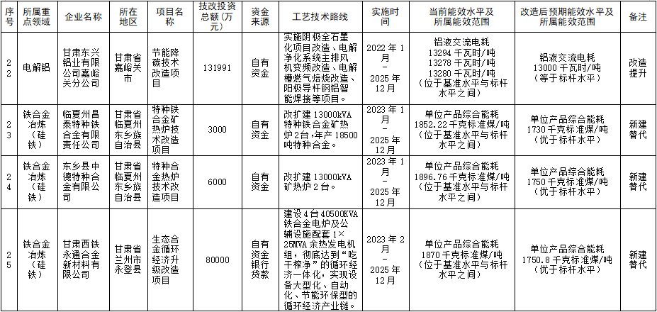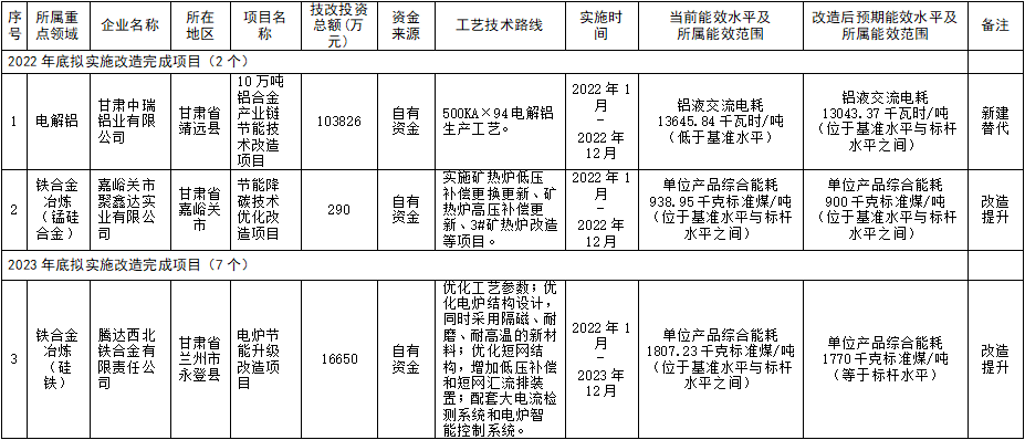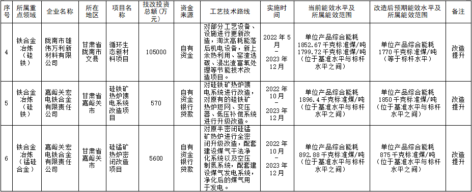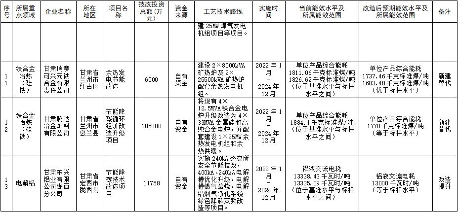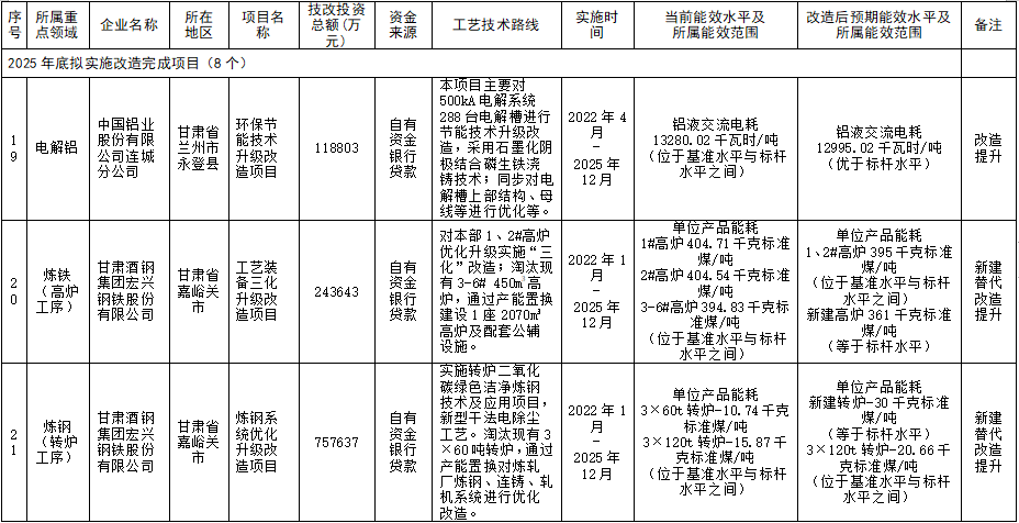 甘肅省冶金領(lǐng)域企業(yè)技術(shù)改造清單
