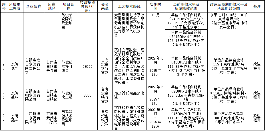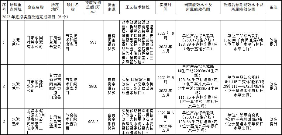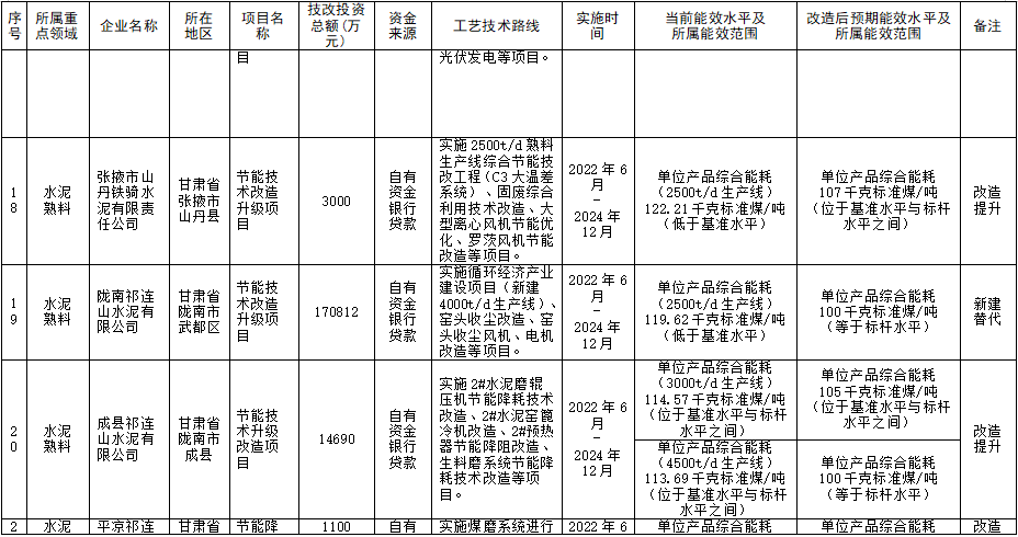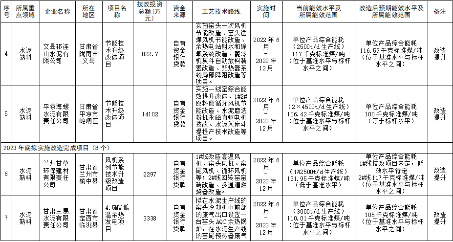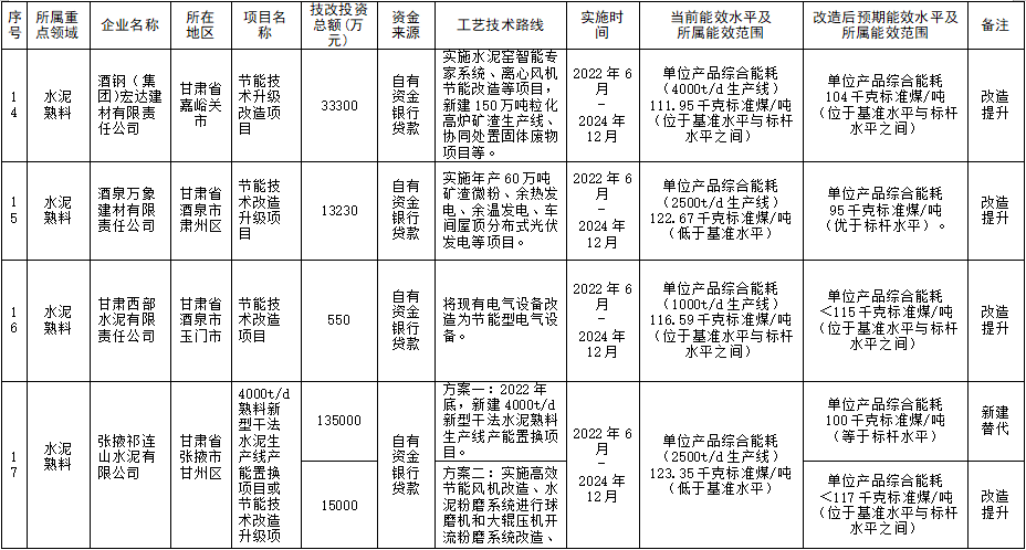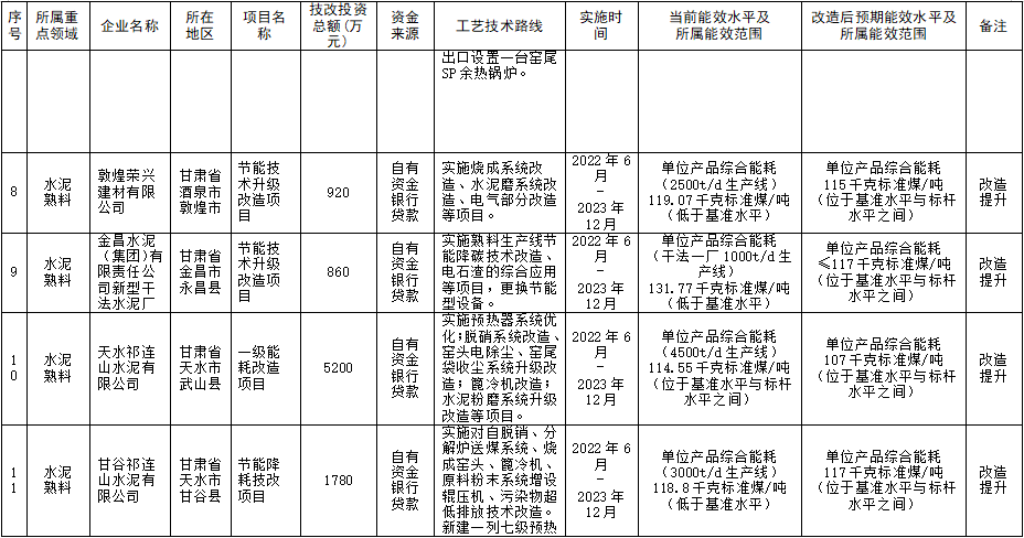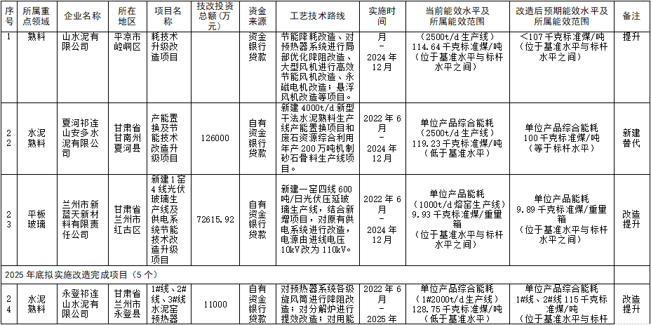 甘肅省建材領(lǐng)域企業(yè)技術(shù)改造清單