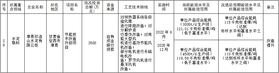 1.甘肅永固特種水泥有限公司節(jié)能技術(shù)升級改造項目