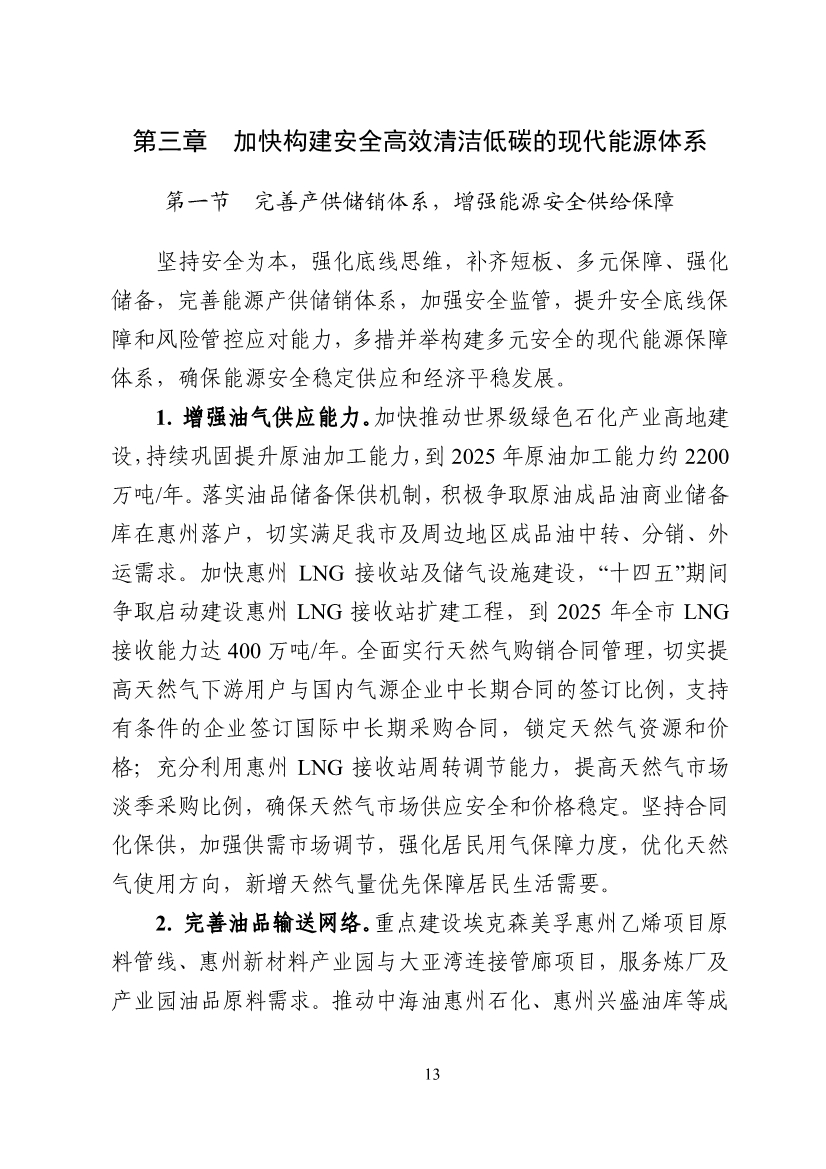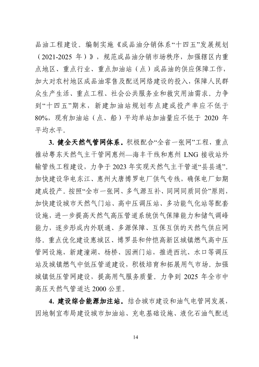 惠州市人民政府關(guān)于印發(fā)《惠州市能源發(fā)展“十四五”規(guī)劃》的通知