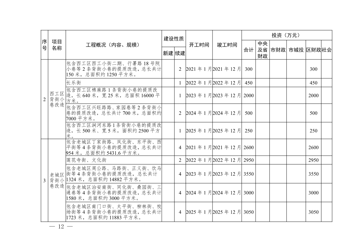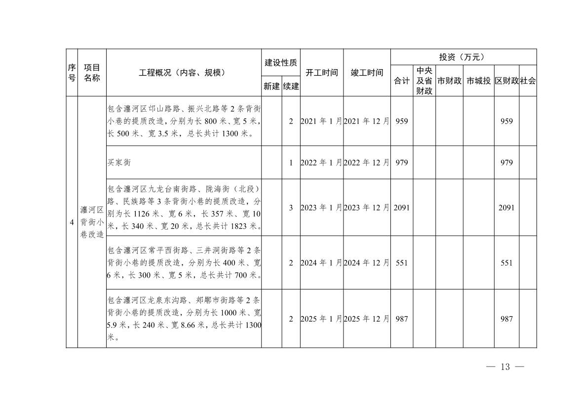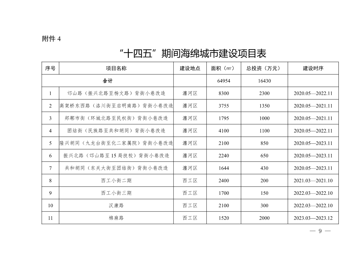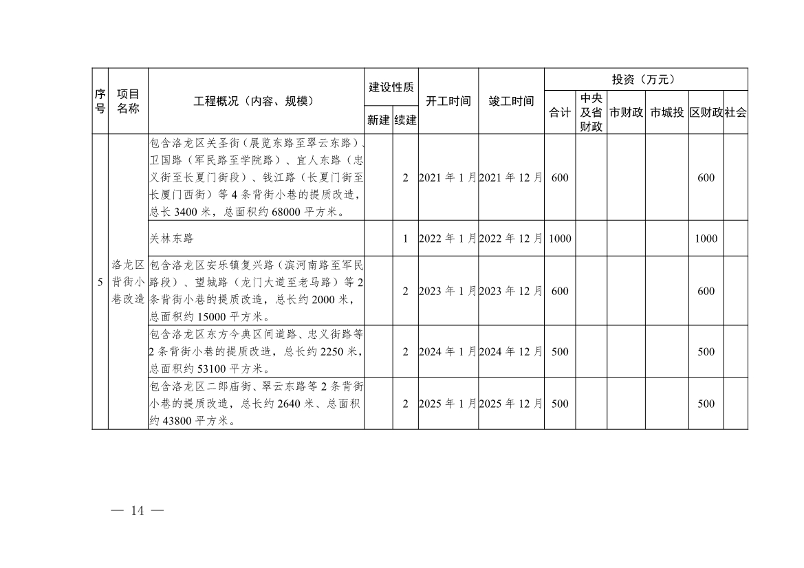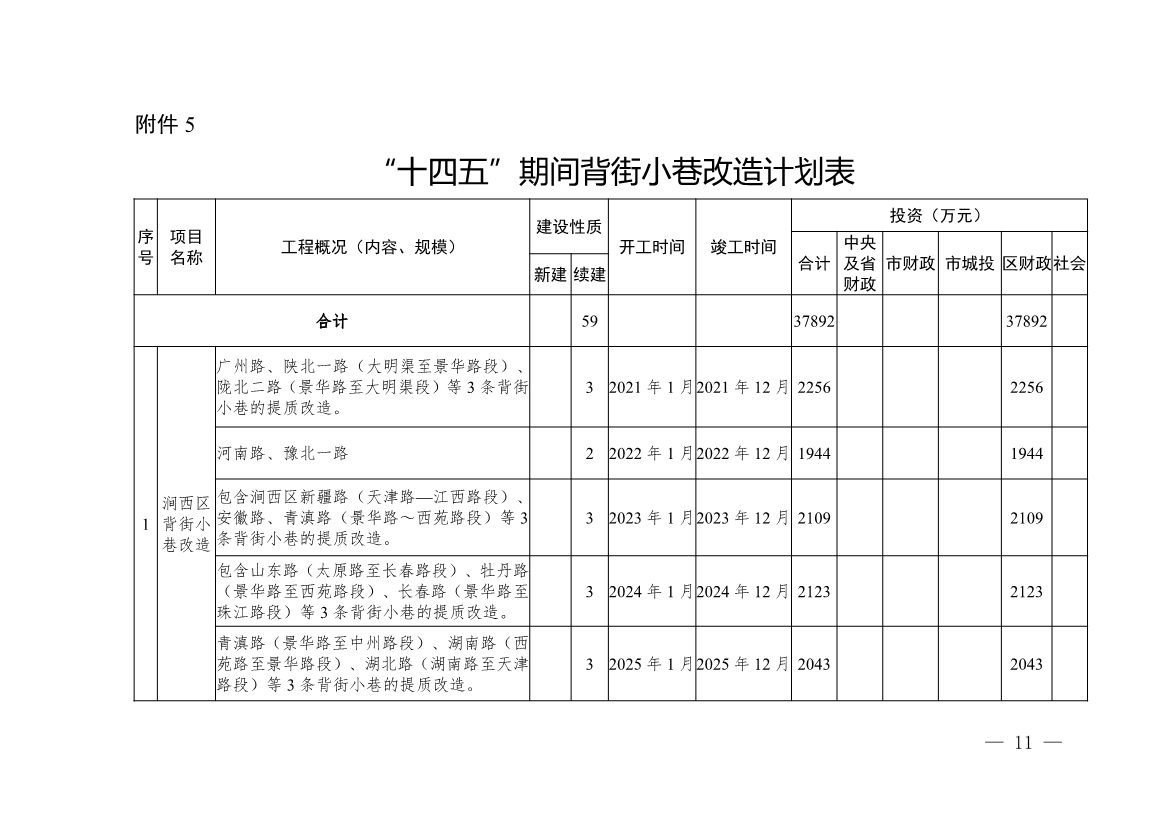 5.“十四五”期間背街小巷改造計(jì)劃表