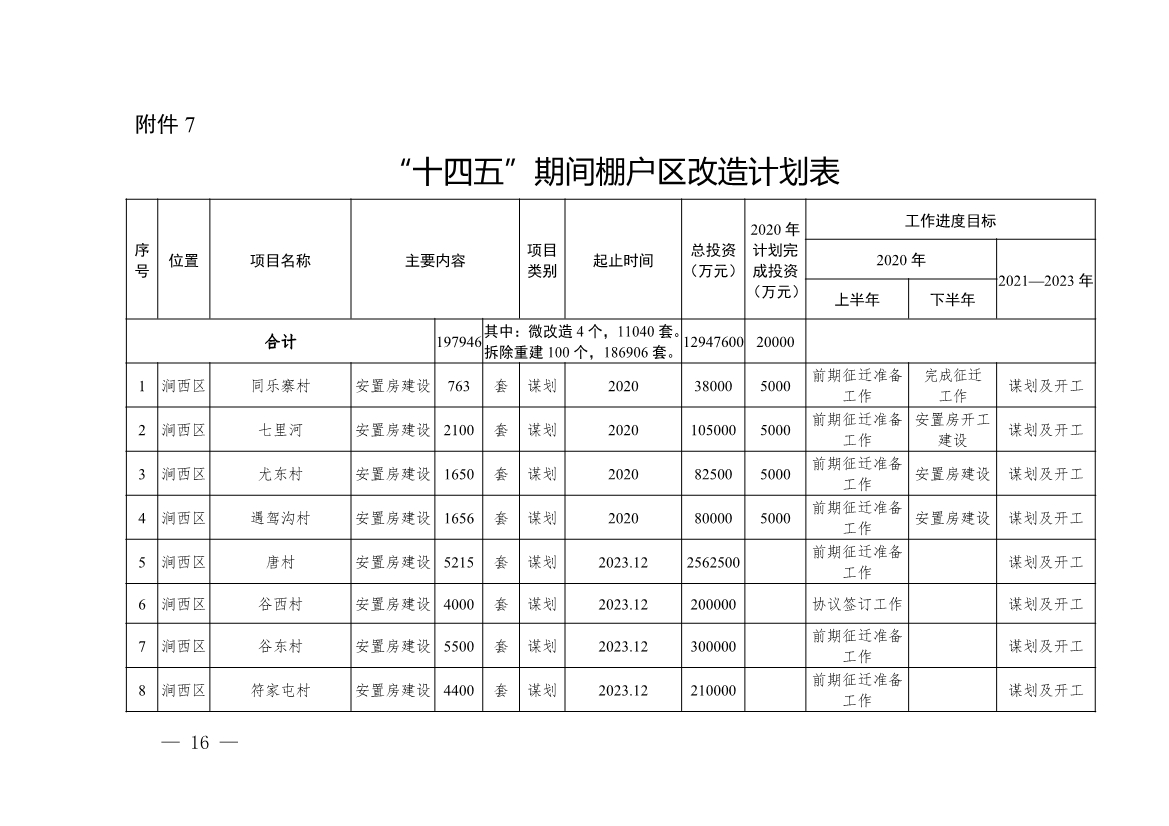 7.“十四五”期間棚戶區(qū)改造計(jì)劃表