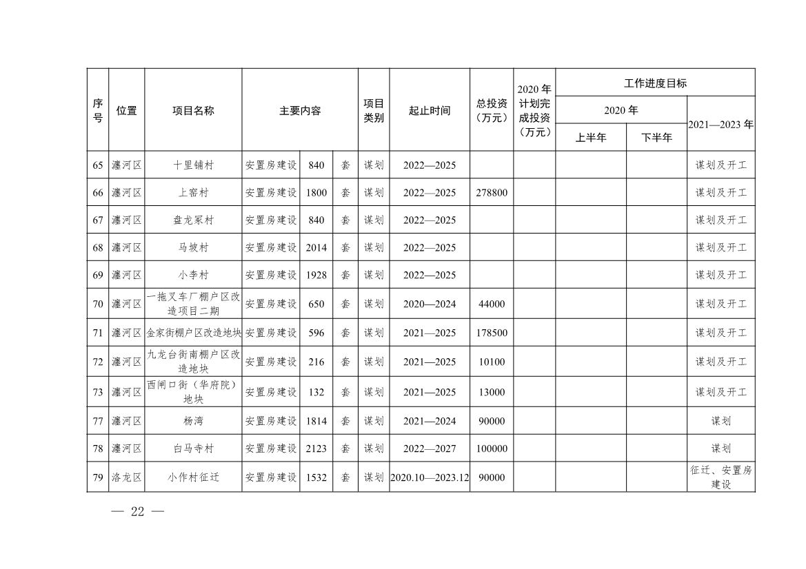 一是大力推進(jìn)保障性租賃住房建設(shè)?!笆奈濉逼陂g,將發(fā)展保障性租賃住房作為住房建設(shè)的重點(diǎn)任務(wù),計(jì)劃籌建保障性租賃住房5萬套(間)、310萬平方米,力爭達(dá)到8.5萬套(間)、525萬平方米,新增保障性租賃住房占新增住房供應(yīng)總量的比例力爭達(dá)到15%以上。加快推動(dòng)公共租賃住房租賃補(bǔ)貼辦法實(shí)施,指導(dǎo)市縣進(jìn)一步調(diào)整、完善租賃補(bǔ)貼政策,提高覆蓋面,使租賃補(bǔ)貼政策覆蓋到所有保障人群,著力解決公共租賃住房供應(yīng)不足問題。實(shí)施人才安居工程,通過為來洛就業(yè)發(fā)展的各類人才提供安居保障,進(jìn)一步提升區(qū)域競爭力和比較優(yōu)勢,加大人才引聚力度,優(yōu)化宜居宜業(yè)發(fā)展環(huán)境。落實(shí)《洛陽市引進(jìn)人才住房補(bǔ)貼辦法(試行)》,給予符合條件的人才購房補(bǔ)貼、租房補(bǔ)貼等優(yōu)惠政策,提高高層次人才購房公積金的貸款額度、租房公積金的提取額度。支持用人單位通過購買、租賃商品房,或利用自有存量建設(shè)用地,自籌資金建設(shè)人才公寓等方式為高層次人才提供住房保障。鼓勵(lì)在新建商品房項(xiàng)目中配建人才安居房。加快發(fā)展保障性租賃住房,推動(dòng)青年友好型城市建設(shè),提升洛陽對(duì)青年大學(xué)生的吸納力、吸引力和承載力,新籌建保障性租賃住房優(yōu)先供應(yīng)來洛就業(yè)創(chuàng)業(yè)的青年大學(xué)生,供應(yīng)青年大學(xué)生保障性租賃住房量占新籌建保障性租賃住房供應(yīng)總量的比例不低于40%。二是探索共有產(chǎn)權(quán)住房建設(shè)。結(jié)合我市實(shí)際,制訂《洛陽市共有產(chǎn)權(quán)住房管理辦法》,采取試點(diǎn)建設(shè)的方式,做好土地供應(yīng),由國有建設(shè)平臺(tái)或招標(biāo)優(yōu)秀開發(fā)企業(yè)進(jìn)行建設(shè),完成2000套共有產(chǎn)權(quán)住房的建設(shè)目標(biāo),為下一步全面實(shí)施打下基礎(chǔ)。加大青年人才公寓供給,擴(kuò)大入住范圍,市級(jí)公寓本科及以上大學(xué)畢業(yè)生均可申請(qǐng)入住。各縣區(qū)要加大青年公寓保障力度,自主決定入住范圍,并給予適當(dāng)補(bǔ)貼。對(duì)有購買意愿的可以以共有產(chǎn)權(quán)模式優(yōu)惠購買。三是持續(xù)推進(jìn)棚戶區(qū)改造。抓住中央、省積極支持棚戶區(qū)改造的歷史機(jī)遇,科學(xué)穩(wěn)妥推進(jìn)棚戶區(qū)改造工作?!笆奈濉逼陂g計(jì)劃實(shí)施104個(gè)棚戶區(qū)改造項(xiàng)目。建設(shè)197946套安置房,其中微改造4個(gè)項(xiàng)目,11040套;拆除重建100個(gè)項(xiàng)目,186906套。通過棚戶區(qū)改造,保障城市中低收入群體住房改善需求,提升居住環(huán)境。積極申請(qǐng)棚戶區(qū)改造專項(xiàng)債,保障續(xù)建項(xiàng)目后續(xù)資金支持,推動(dòng)新建項(xiàng)目創(chuàng)新完善資金平衡模式,爭取更多專項(xiàng)債資金。充分發(fā)揮市縣融資平臺(tái)作用,積極和國有大型企業(yè)合作,鼓勵(lì)民間資本進(jìn)入棚戶區(qū)改造領(lǐng)域。四是繼續(xù)推進(jìn)經(jīng)濟(jì)適用住房建設(shè)。繼續(xù)做好河南省已下達(dá)建設(shè)計(jì)劃剩余經(jīng)濟(jì)適用住房項(xiàng)目申請(qǐng)家庭資格審核工作,做好正常的分配管理。洛陽市已審批尚未建設(shè)的經(jīng)濟(jì)適用住房項(xiàng)目剩余4個(gè),要進(jìn)一步加強(qiáng)管理,做好建設(shè)、分配的收尾工作,順利完成建設(shè)任務(wù),實(shí)現(xiàn)向中低收入家庭提供2000套住房的建設(shè)目標(biāo)。五是加強(qiáng)管理體系建設(shè)。創(chuàng)新經(jīng)營管理機(jī)制。積極探索保障房的后續(xù)使用管理,著力破解保障房小區(qū)運(yùn)營管理難題。逐步推行保障房小區(qū)屬地管理,實(shí)行社區(qū)化管理服務(wù)。推動(dòng)洛陽市原有保障性住房運(yùn)營市場化,加大保障性住房建設(shè)資金歸集力度;推動(dòng)新型保障性住房多元化,調(diào)動(dòng)社會(huì)各方力量參與建設(shè),加強(qiáng)流動(dòng),盤活資源。擴(kuò)大住房保障覆蓋面,簡化手續(xù),優(yōu)化流程,適當(dāng)調(diào)整準(zhǔn)入條件,著力解決新市民、青年人、城市基本公共服務(wù)人員等群體住房困難問題,保證新市民、青年人等群體住房困難得到有效緩解。建立健全保障房退出機(jī)制,嚴(yán)肅查處保障性住房出租、出借、閑置等違法違規(guī)行為。