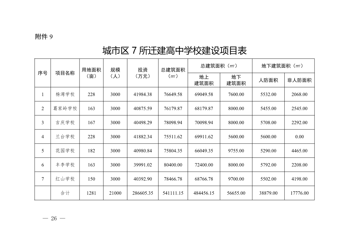 9.? ?城市區(qū)7所遷建高中學(xué)校建設(shè)項(xiàng)目表