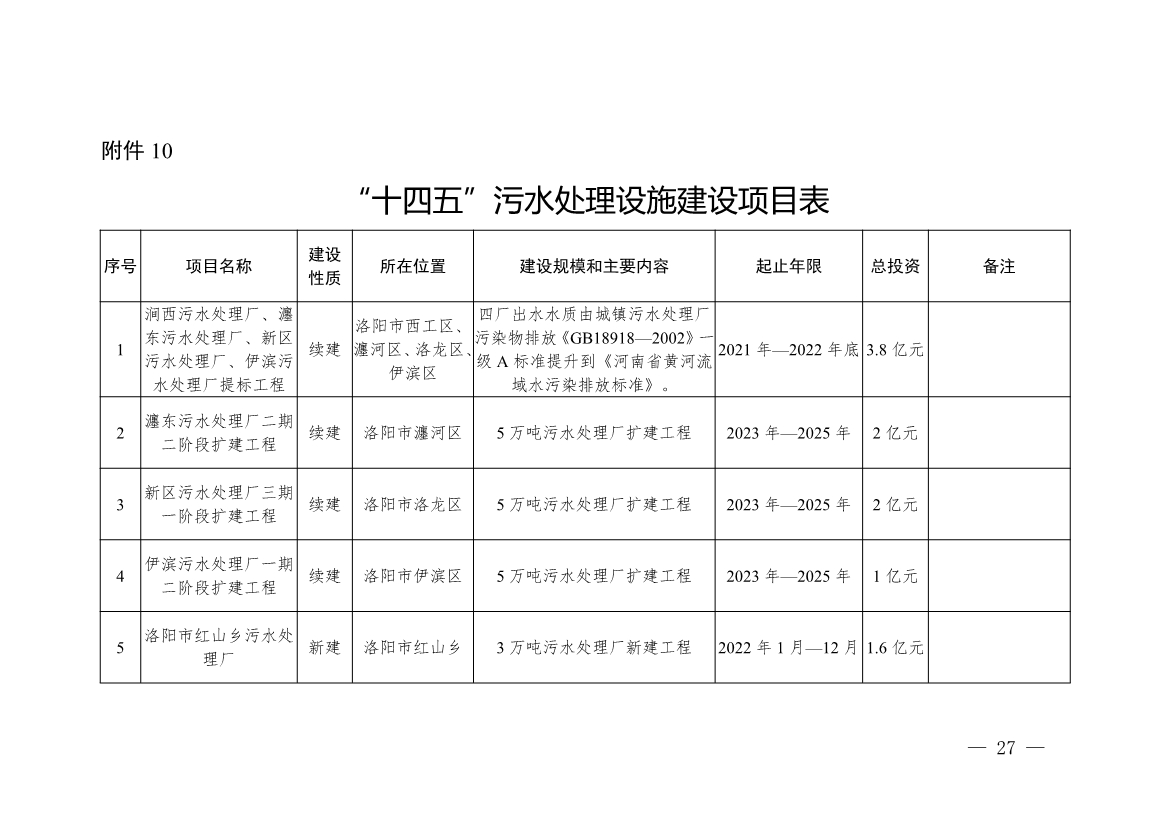 10.“十四五”污水處理設(shè)施建設(shè)項(xiàng)目表