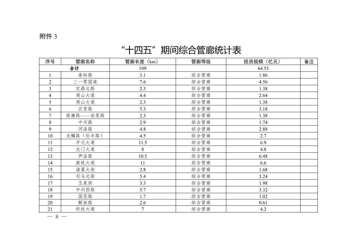 3.“十四五”期間綜合管廊統(tǒng)計(jì)表