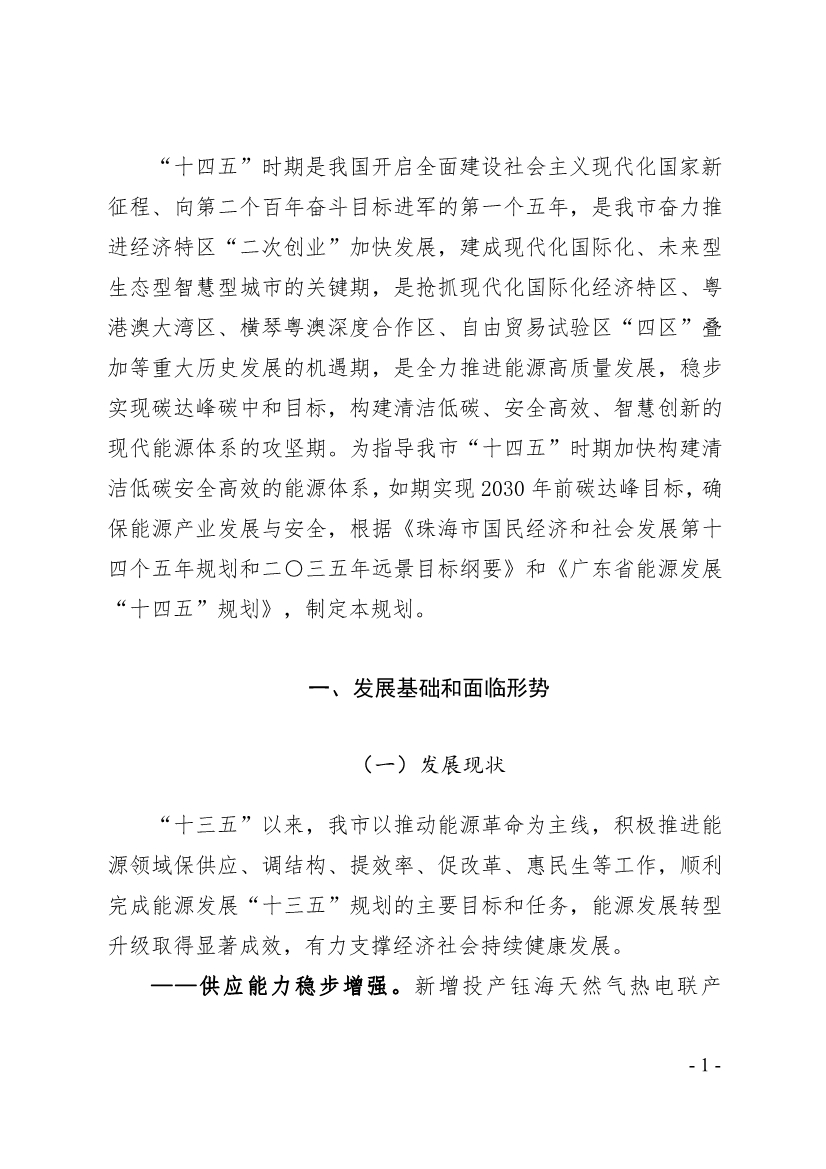 關(guān)于印發(fā)《珠海市能源發(fā)展“十四五”規(guī)劃》的通知