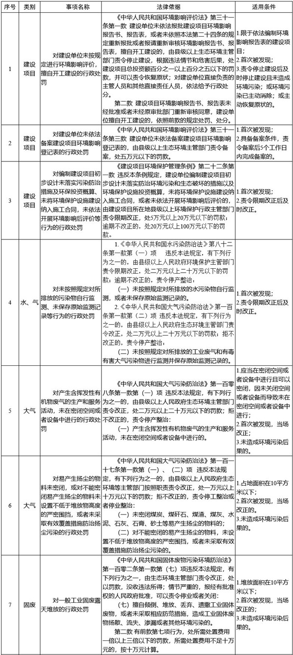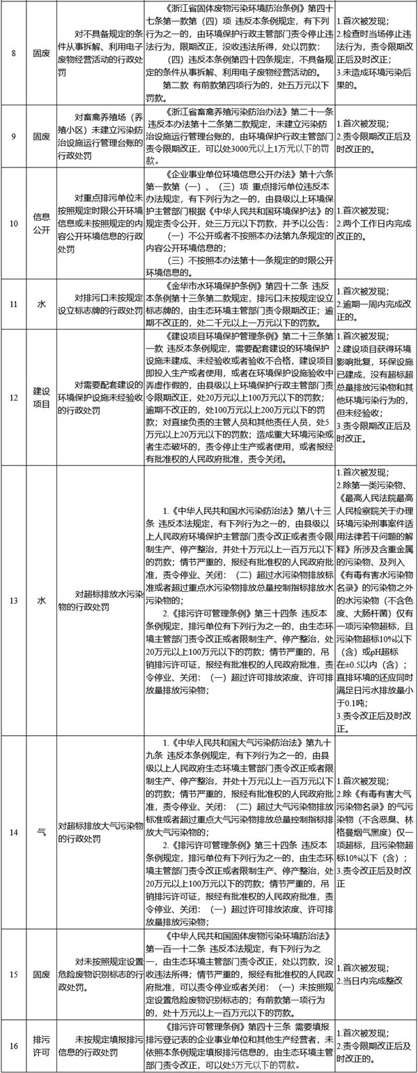 金華市生態(tài)環(huán)境輕微違法行為不予處罰清單(2022年修訂版)