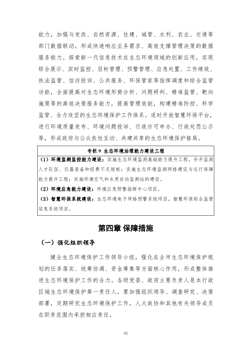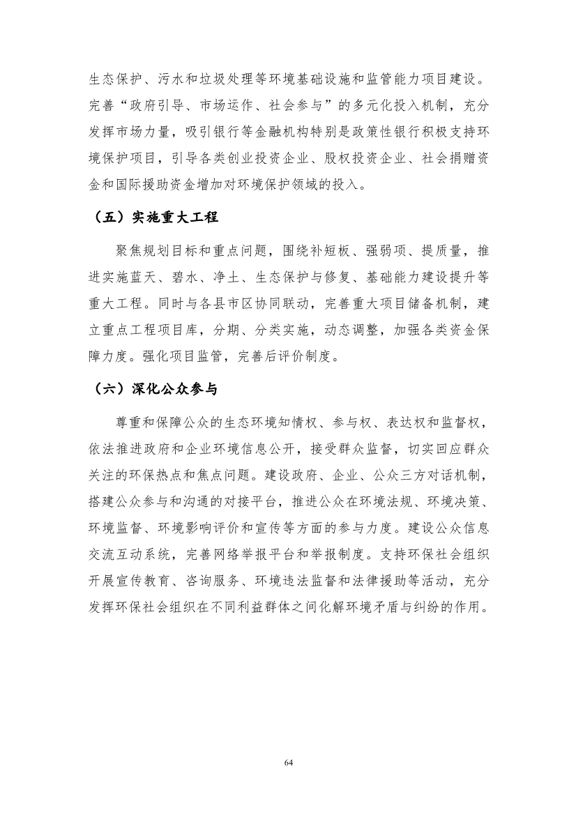 第四部分是保障措施,從強(qiáng)化組織領(lǐng)導(dǎo)、明確責(zé)任分工、加強(qiáng)考核評(píng)估、加大資金投入、實(shí)施重大工程、深化公眾參與6個(gè)方面加強(qiáng)《規(guī)劃》實(shí)施保障。