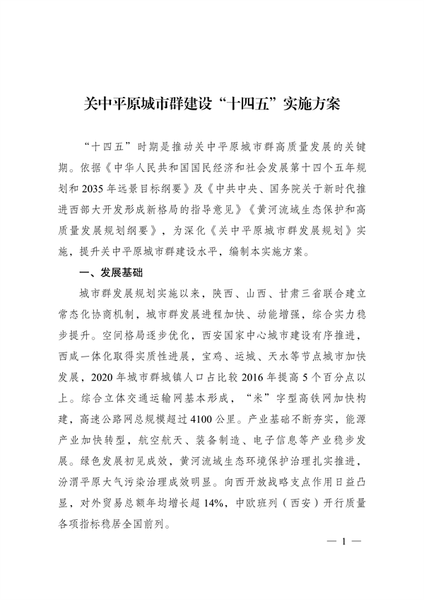 推進(jìn)生態(tài)共建環(huán)境共保 發(fā)改委印發(fā)《關(guān)中平原城市群建設(shè)“十四五”實(shí)施方案》