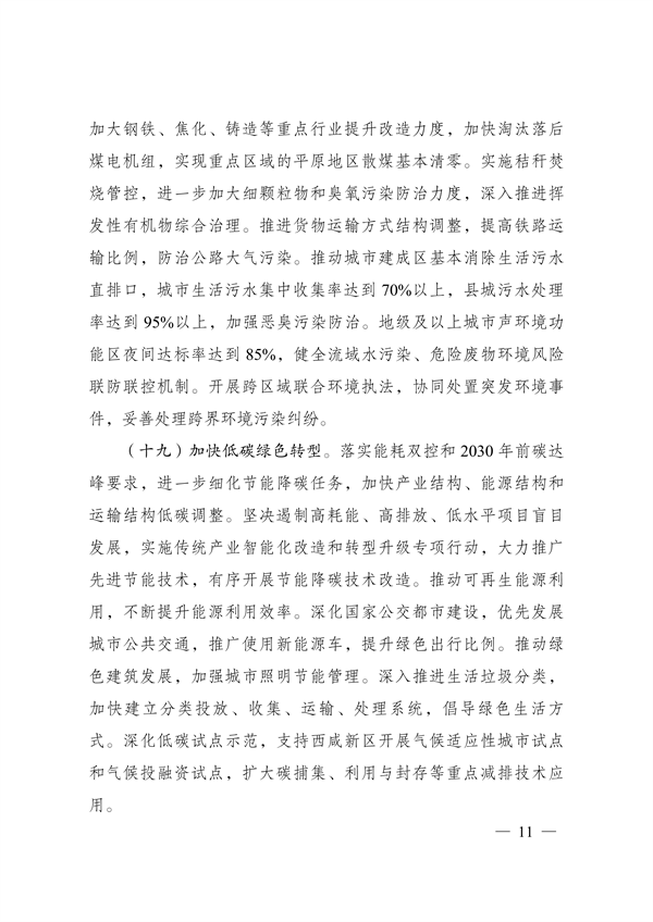 發(fā)改委印發(fā)《關(guān)中平原城市群建設(shè)“十四五”實(shí)施方案》,其中第六部分提出推進(jìn)生態(tài)共建環(huán)境共保,推進(jìn)環(huán)境污染聯(lián)合治理,提升黃河水生態(tài)質(zhì)量和穩(wěn)定性,加快低碳綠色轉(zhuǎn)型,具體有。強(qiáng)化汾渭平原大氣污染協(xié)同治理,加強(qiáng)重污染天氣應(yīng)急聯(lián)動(dòng),位于國(guó)家大氣污染防治重點(diǎn)區(qū)域的城市完成國(guó)家下達(dá)的煤炭消費(fèi)總量控制任務(wù)。城市生活污水集中收集率達(dá)到70%以上,縣城污水處理率達(dá)到95%以上,加強(qiáng)惡臭污染防治等。詳情如下: