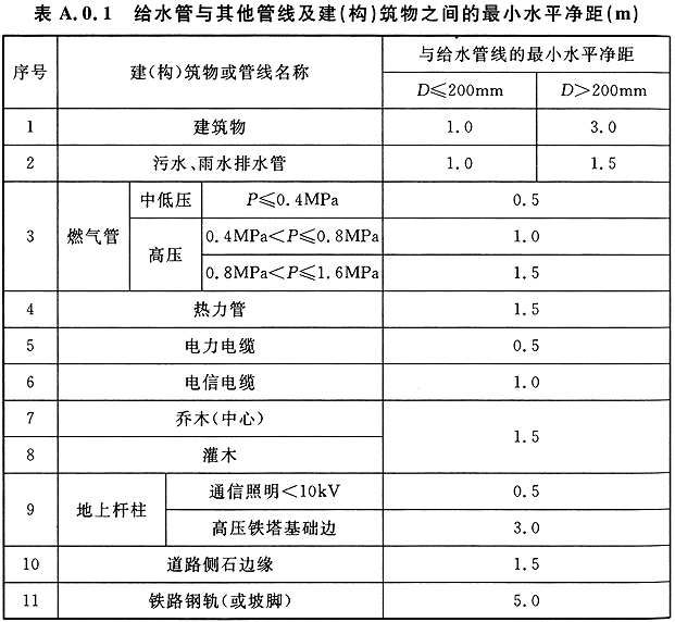 附錄 A 給水管與其他管線及建 ( 構(gòu) ) 筑物之間的最小水平凈距