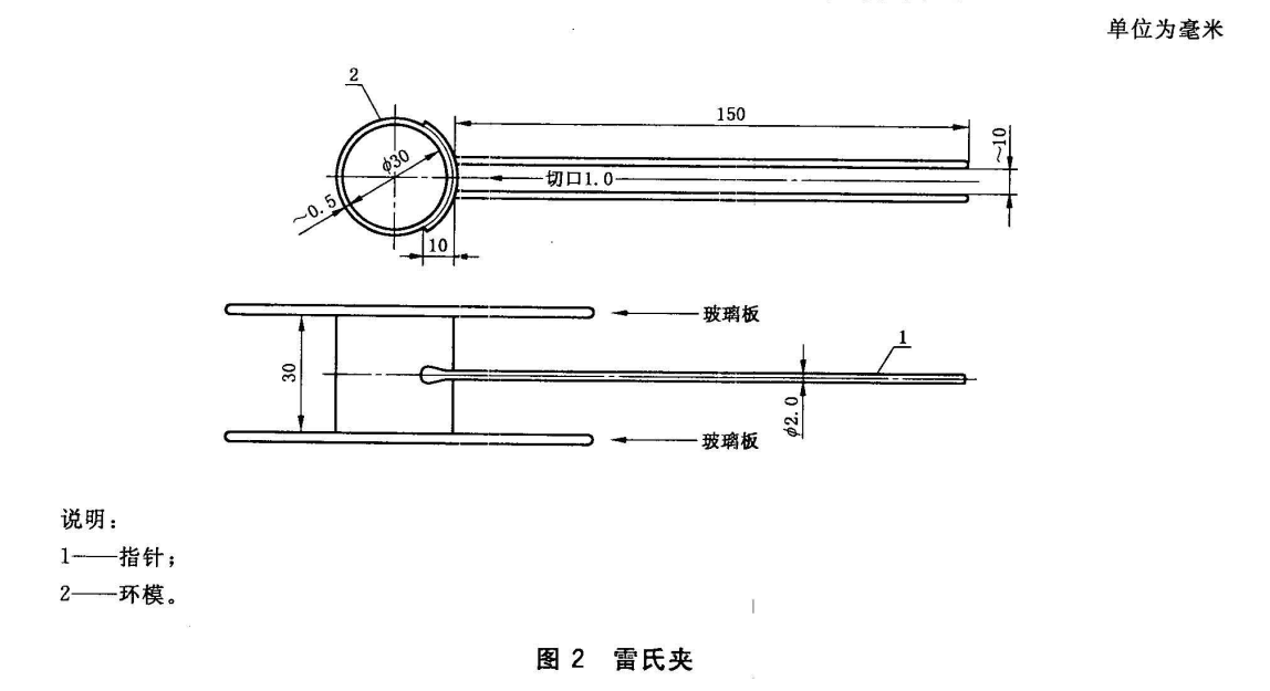 每個試樣需成型兩個試件,每個雷氏夾需配備兩個邊長或直徑約80 mm、厚度4 mm~5 mm的玻璃板,凡與水泥凈漿接觸的玻璃板和雷氏夾內表面都要稍稍涂上一層油。