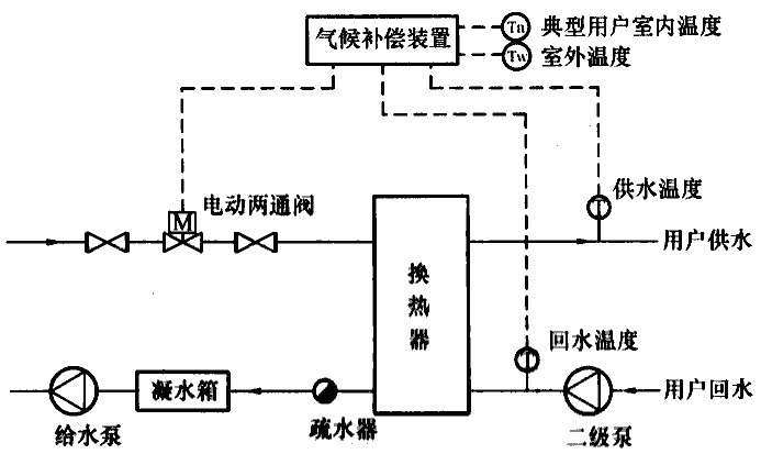 根據(jù)室外氣象條件和室內(nèi)溫度,自動調(diào)節(jié)供熱量的系統(tǒng)。