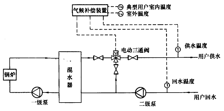 4 在經(jīng)濟(jì)技術(shù)比較合理前提下,二次管網(wǎng)可采用末端混水方式。