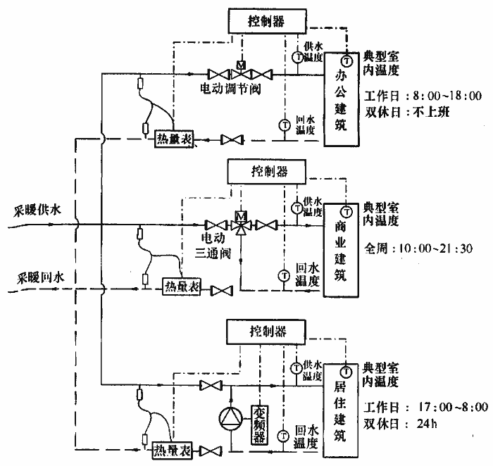根據(jù)建筑物的供暖需求和用熱規(guī)律,分區(qū)域、分時段對建筑物供熱參數(shù)進(jìn)行自動獨(dú)立管理的控制系統(tǒng)。