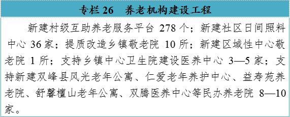 66.積極應(yīng)對(duì)人口老齡化。落實(shí)國家人口長(zhǎng)期發(fā)展戰(zhàn)略,落實(shí)優(yōu)化生育政策,提高優(yōu)生優(yōu)育服務(wù)水平,發(fā)展普惠性托育服務(wù)體系,降低生育、養(yǎng)育、教育成本,提高人口素質(zhì)。開發(fā)老齡人力資源,發(fā)展銀發(fā)經(jīng)濟(jì)。推動(dòng)養(yǎng)老事業(yè)和養(yǎng)老產(chǎn)業(yè)協(xié)同發(fā)展,推進(jìn)城鄉(xiāng)養(yǎng)老服務(wù)設(shè)施提質(zhì)升級(jí),健全基本養(yǎng)老服務(wù)體系,發(fā)展普惠型養(yǎng)老服務(wù)和互助性養(yǎng)老,支持家庭承擔(dān)養(yǎng)老功能,培育養(yǎng)老新業(yè)態(tài),構(gòu)建居家社區(qū)機(jī)構(gòu)相協(xié)調(diào)、醫(yī)養(yǎng)康養(yǎng)相結(jié)合的養(yǎng)老服務(wù)體系,健全養(yǎng)老服務(wù)綜合監(jiān)管制度,打造區(qū)域性康養(yǎng)中心。切實(shí)解決老年人運(yùn)用智能技術(shù)困難,讓老年人更好共享信息化發(fā)展成果。
