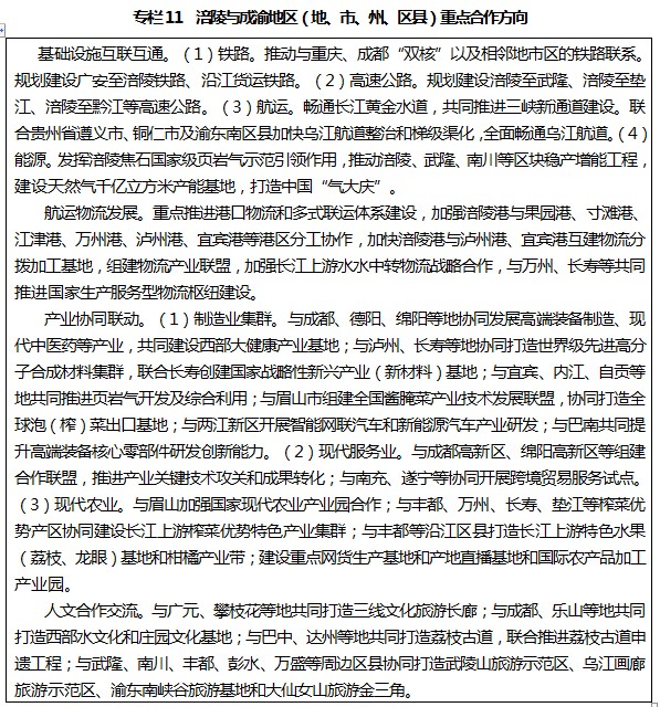 統(tǒng)籌東西南北四個方向、鐵公水空四種方式,人流物流資金流信息流四類要素,提升內(nèi)聯(lián)外通水平,加快構(gòu)筑互聯(lián)互通、快捷高效、輻射川渝、服務(wù)西部的區(qū)域性綜合交通樞紐和航運(yùn)物流中心,加快建設(shè)成渝地區(qū)具有重要影響力的臨港經(jīng)濟(jì)示范區(qū)。
