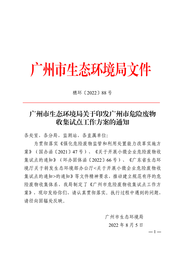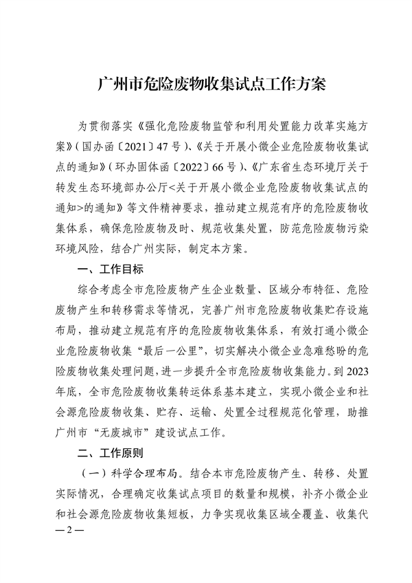 《廣州市危險廢物收集試點工作方案》全文發(fā)布
