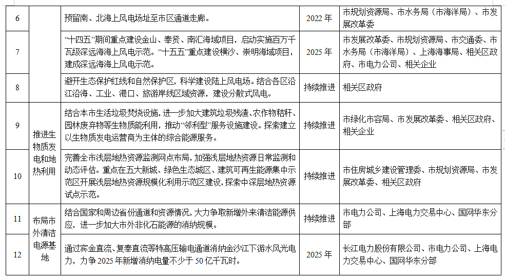 2.加快陸海風(fēng)電開(kāi)發(fā)。制定新一輪海上風(fēng)電發(fā)展規(guī)劃,進(jìn)一步提升海上風(fēng)電開(kāi)發(fā)利用水平。推進(jìn)長(zhǎng)江口外北部、長(zhǎng)江口外南部、杭州灣以及深遠(yuǎn)海海域等4大海上風(fēng)電基地建設(shè),預(yù)留南、北海上風(fēng)電場(chǎng)址至市區(qū)通道走廊。“十四五”期間重點(diǎn)建設(shè)金山、奉賢、南匯海域項(xiàng)目,啟動(dòng)實(shí)施百萬(wàn)千瓦級(jí)深遠(yuǎn)海海上風(fēng)電示范。“十五五”重點(diǎn)建設(shè)橫沙、崇明海域項(xiàng)目,建成深遠(yuǎn)海海上風(fēng)電示范。避開(kāi)生態(tài)保護(hù)紅線和自然保護(hù)區(qū),科學(xué)建設(shè)陸上風(fēng)電場(chǎng)。結(jié)合各區(qū)沿江沿海、工業(yè)、港口、旅游岸線區(qū)域資源,建設(shè)分散式風(fēng)電。2025、2030年全市風(fēng)電裝機(jī)力爭(zhēng)分別超過(guò)262、500萬(wàn)千瓦。