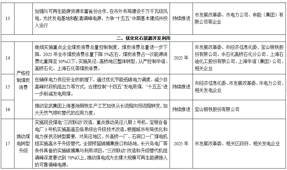 上海市能源電力領(lǐng)域碳達(dá)峰實(shí)施方案