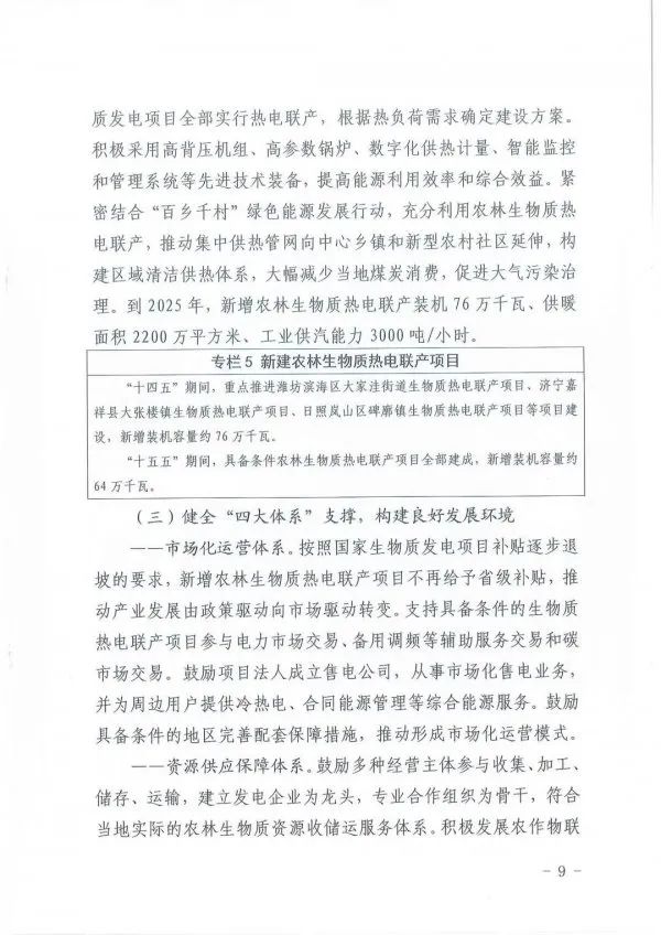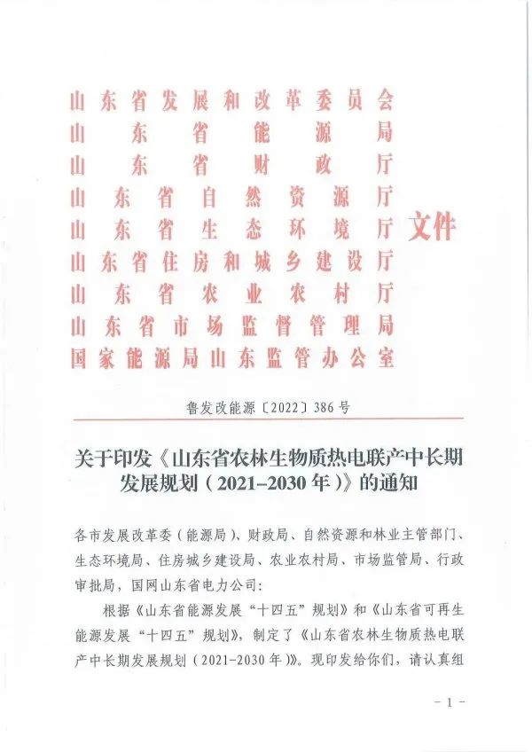 近日,山東省發(fā)展和改革委員會、山東省能源局、山東省財(cái)政廳等9單位聯(lián)合印發(fā)通知,公布《山東省農(nóng)林生物質(zhì)熱電聯(lián)產(chǎn)中長期發(fā)展規(guī)劃(2021—2030年)》。