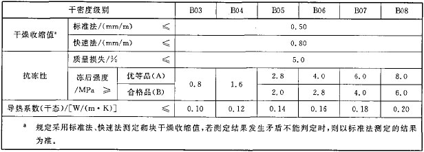 6.5 砌塊的干燥收縮、抗凍性和導(dǎo)熱系數(shù)(干態(tài))應(yīng)符合表6的規(guī)定。