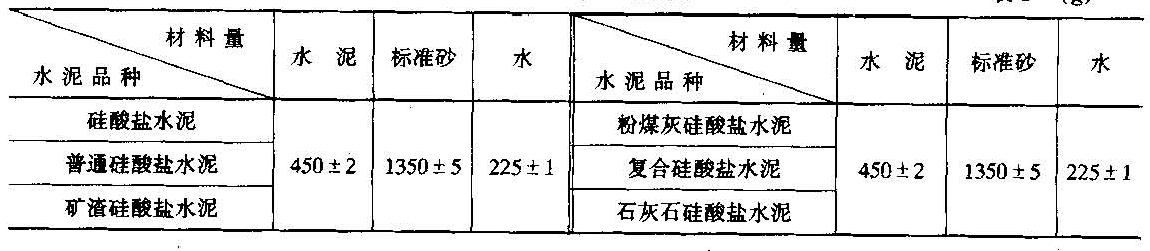 表3 每鍋膠砂的材料數(shù)量 (g)