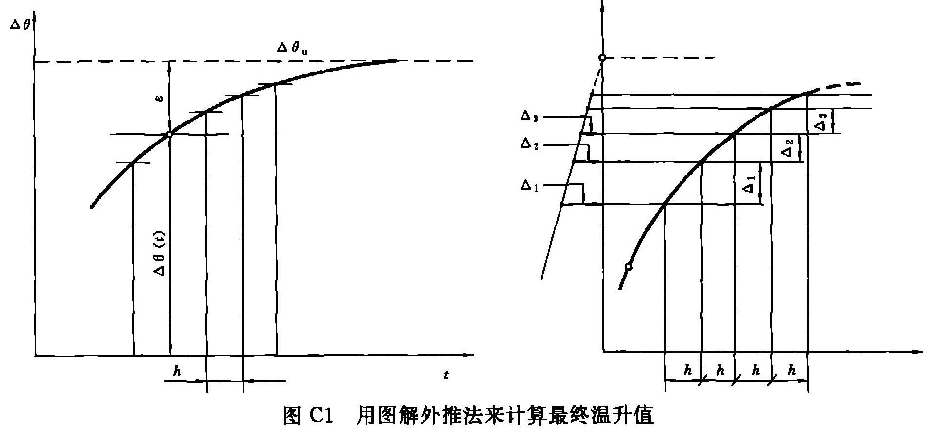 在相同時間間隔下的諸ε值,構(gòu)成一個幾何級數(shù)。故允許按圖C1所示的圖解外推法來計算最終溫升值。