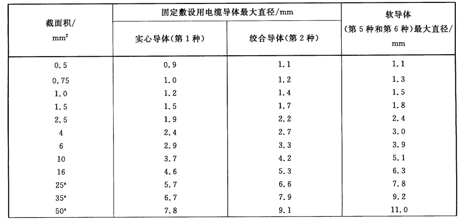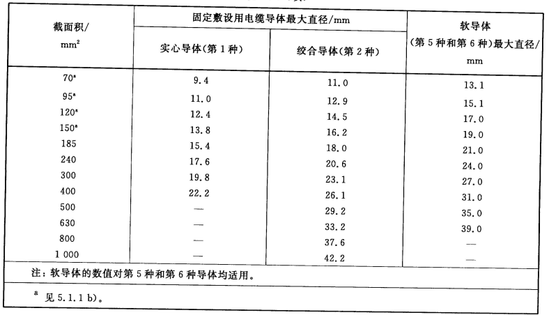 c) 每種導(dǎo)體中的單線直徑不應(yīng)超過(guò)表3或表4規(guī)定的相應(yīng)的最大值。