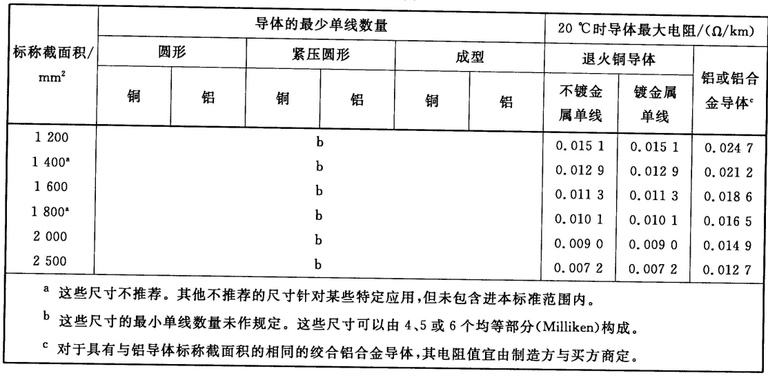 注:本標(biāo)準(zhǔn)中導(dǎo)體的每個(gè)特定尺寸應(yīng)符合最大電阻值的要求。