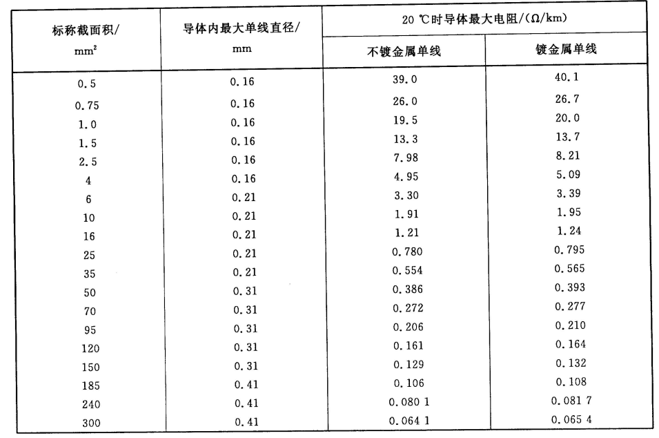 按第7章測(cè)定的20℃時(shí)每種導(dǎo)體的電阻值不應(yīng)超過(guò)表3或表4規(guī)定的相應(yīng)的最大值。