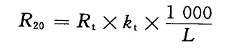 如果必要,應(yīng)采用下列公式將電阻值修正到20℃時(shí)和1 km長(zhǎng)度的電阻值。