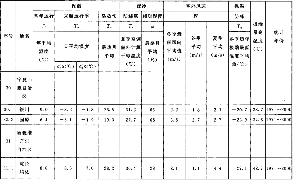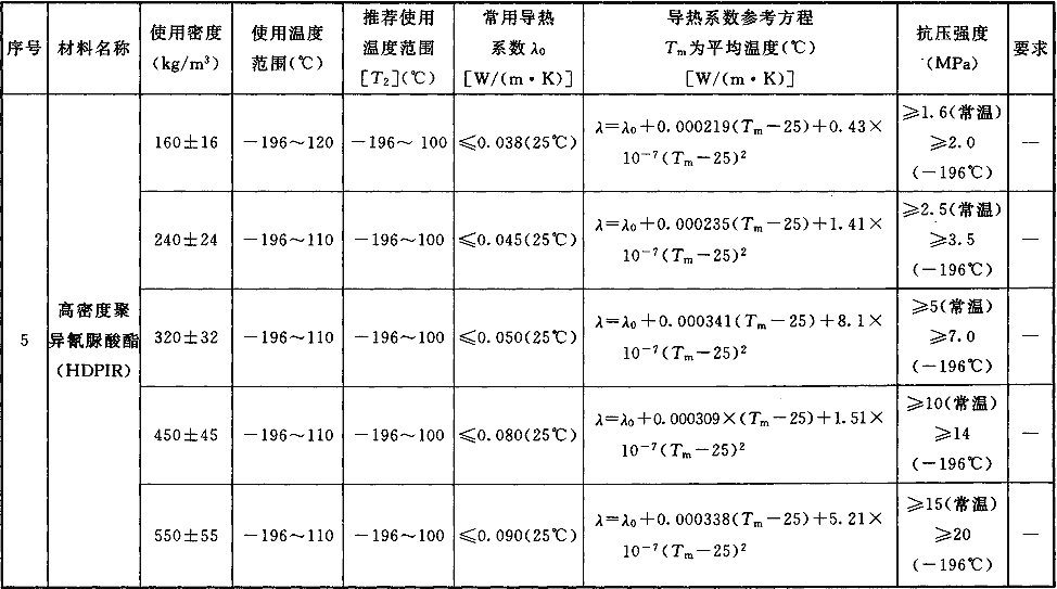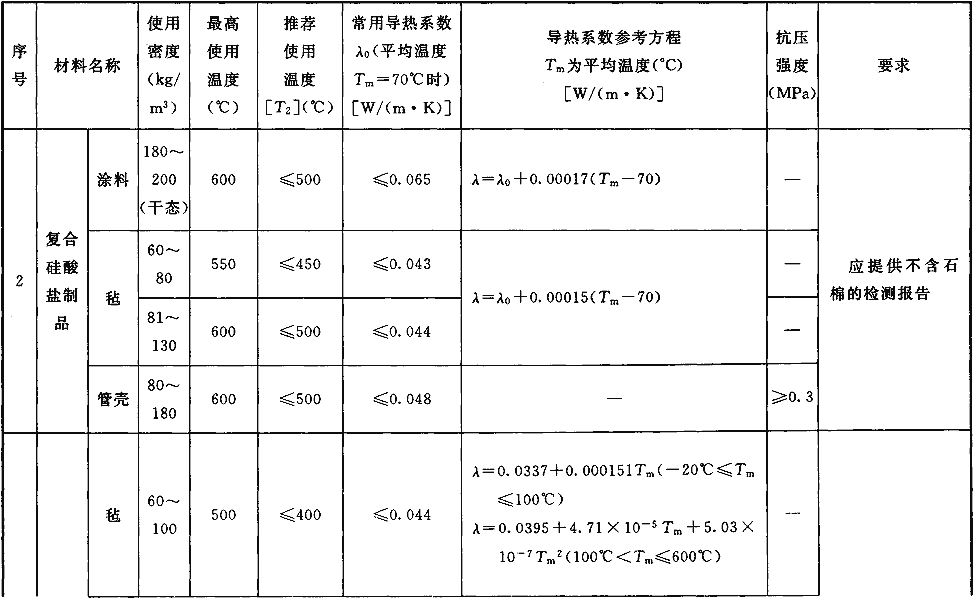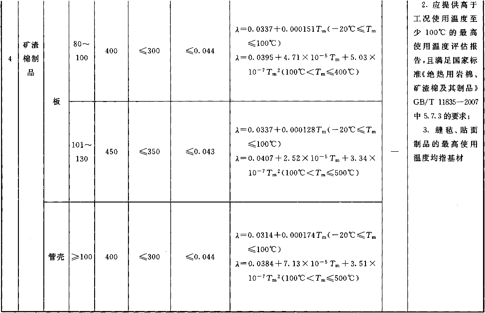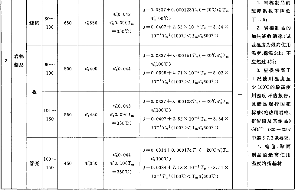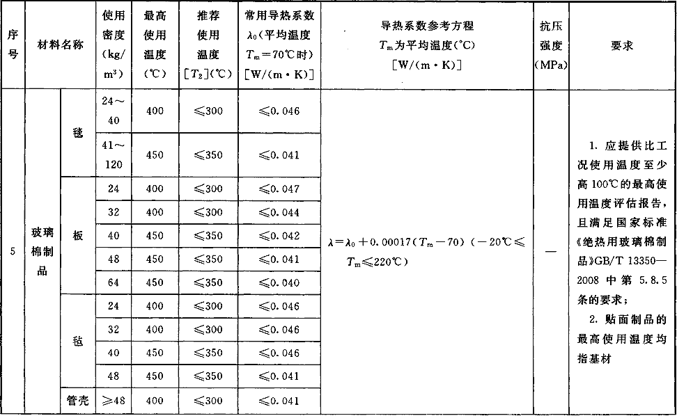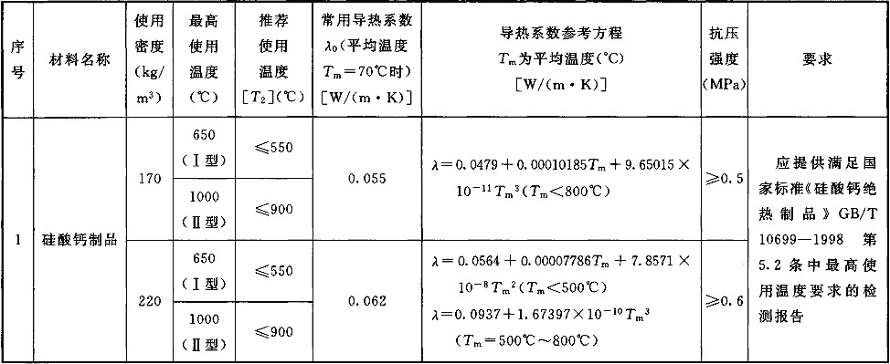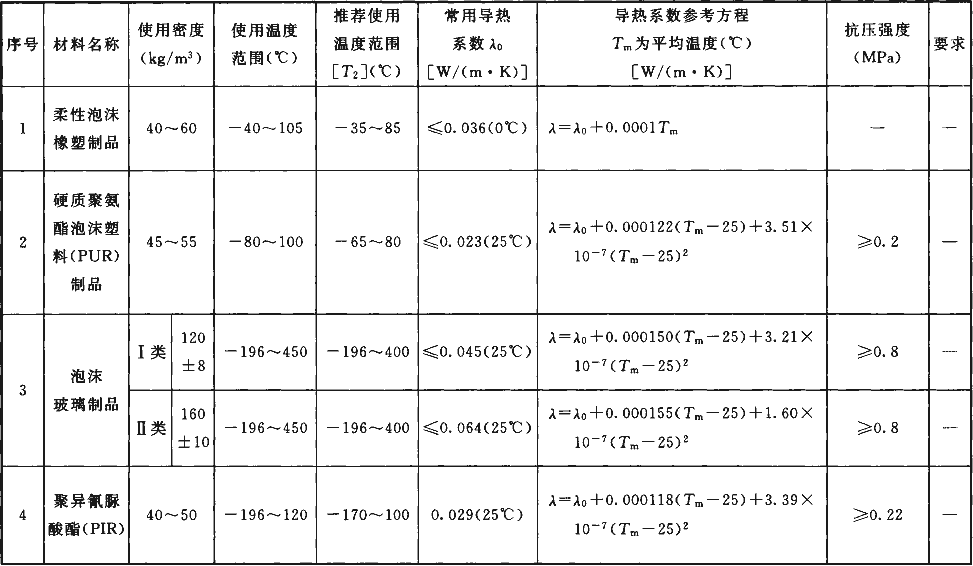 注:1 設(shè)計(jì)采用的各種絕熱材料的物理化學(xué)性能及數(shù)據(jù)應(yīng)符合各自的產(chǎn)品標(biāo)準(zhǔn)規(guī)定。
