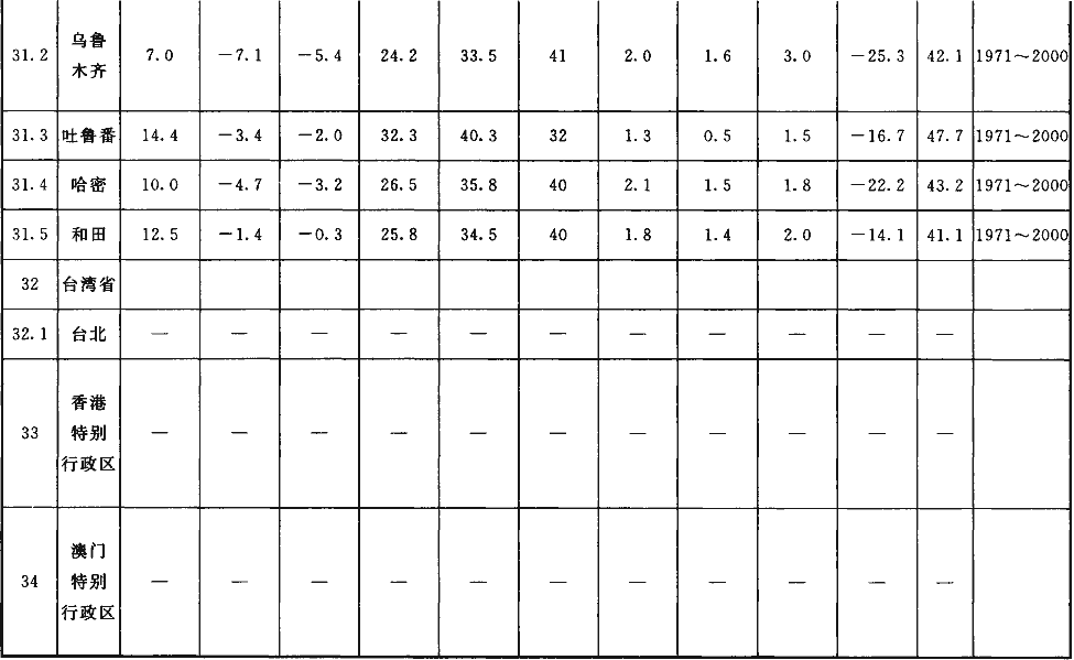 注:表中港澳臺地區(qū)的氣象數(shù)據(jù)缺失,如有需要可向當(dāng)?shù)貧庀蟛块T查詢。