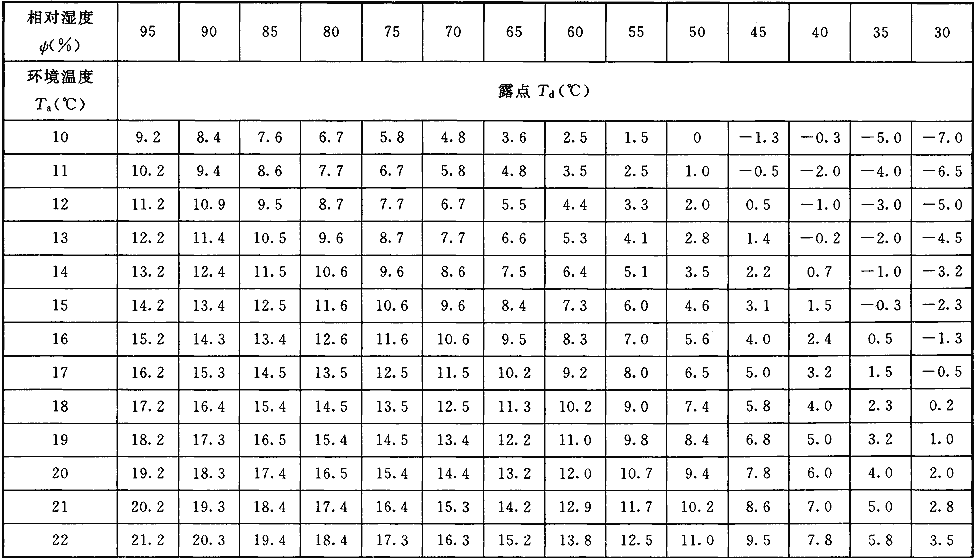 表C.0.2 環(huán)境溫度、相對濕度、露點(diǎn)對照