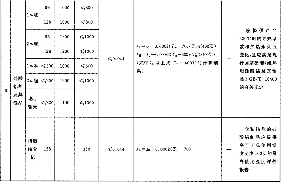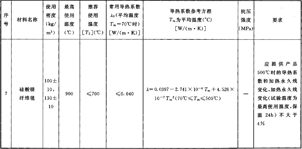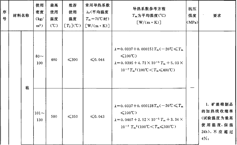3 當(dāng)選用高出本表推薦使用溫度的玻璃棉、巖棉、礦渣棉和含粘結(jié)劑的硅酸鋁制品時(shí),需由廠家提供國家法定檢測機(jī)構(gòu)出具的合格的最高使用溫度評估報(bào)告,起最高使用溫度應(yīng)高于工況使用溫度至少100℃。